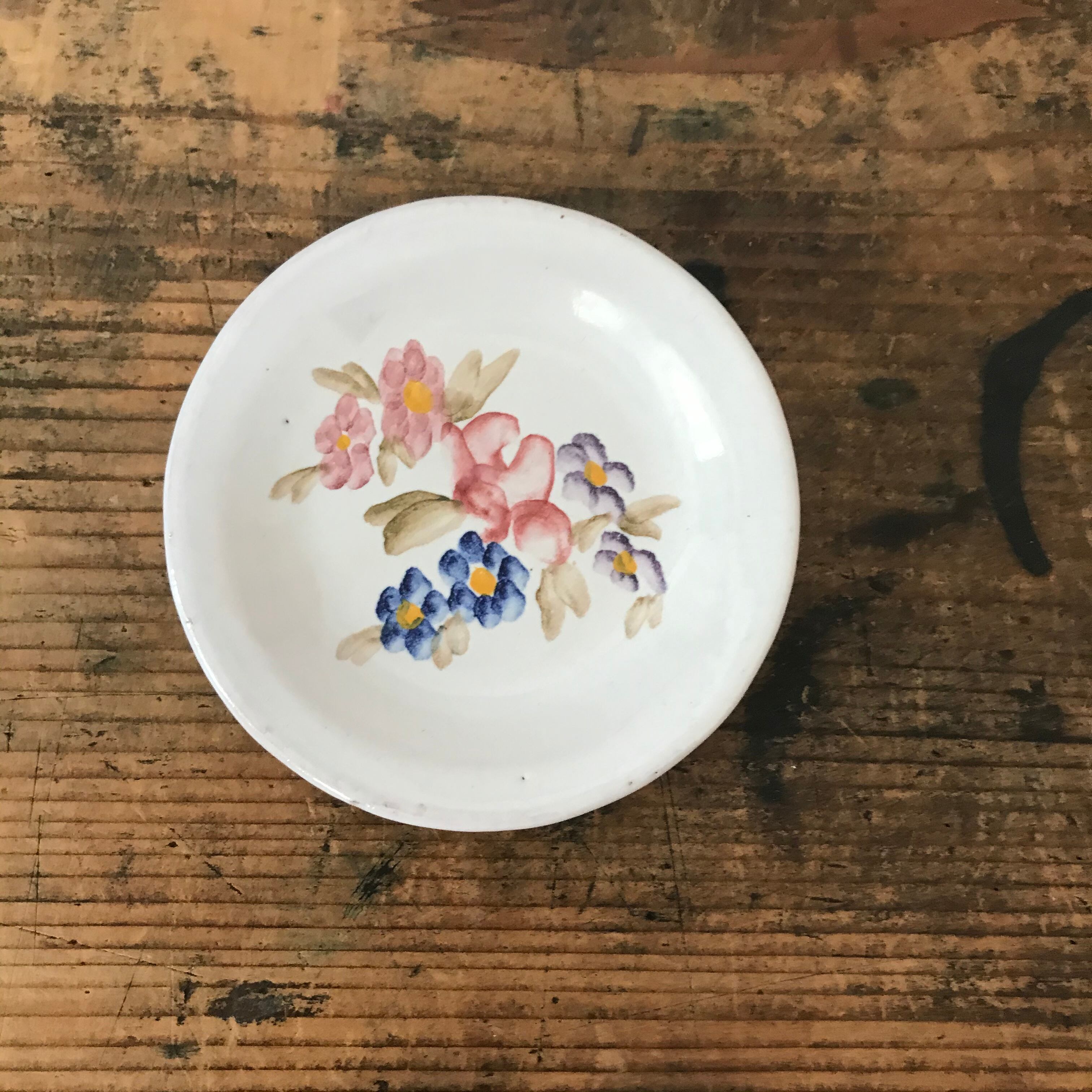 スウェーデンで見つけた手描きの花模様のミニ皿です。