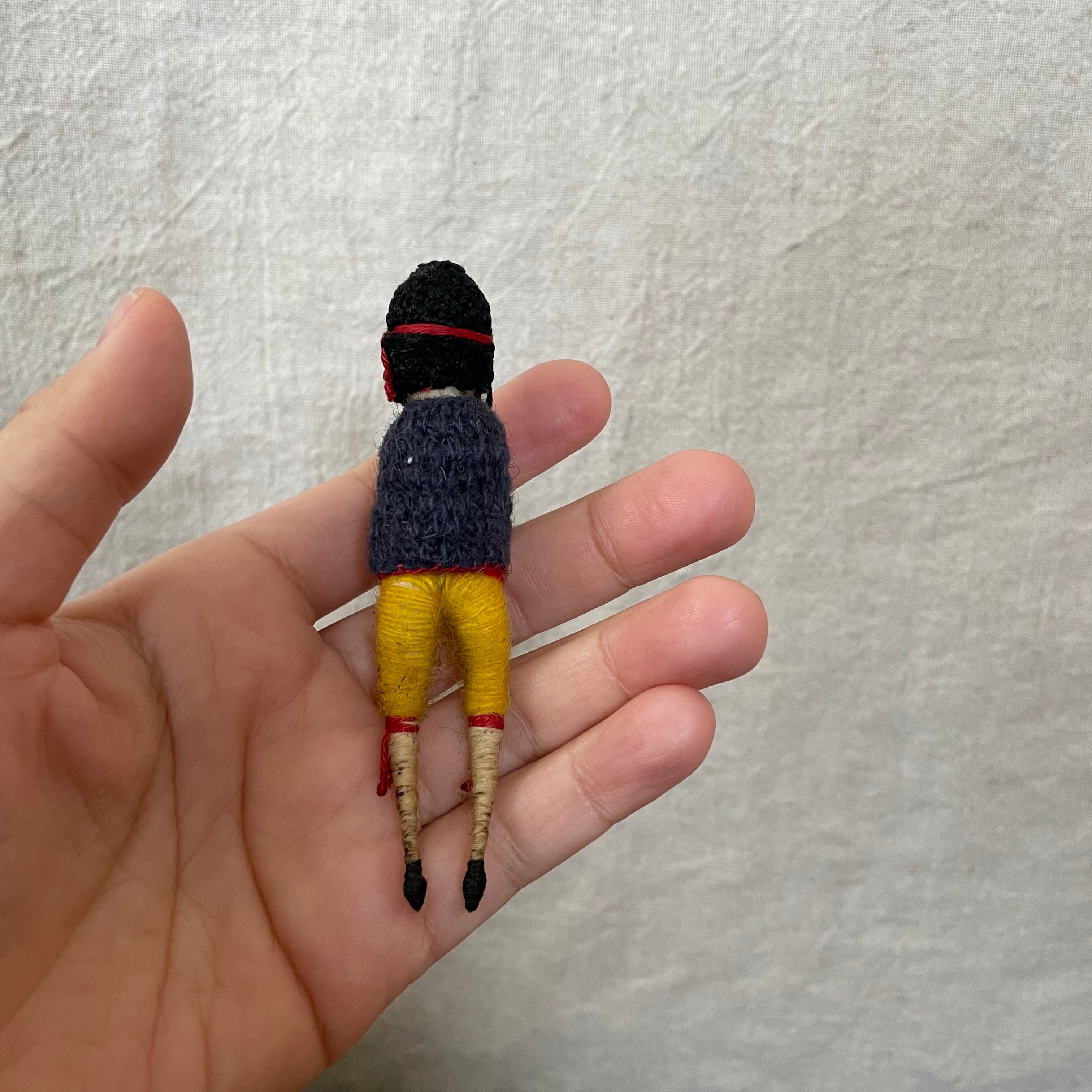 かたい針金のようなものに糸を巻きつけて作られた人たちです。