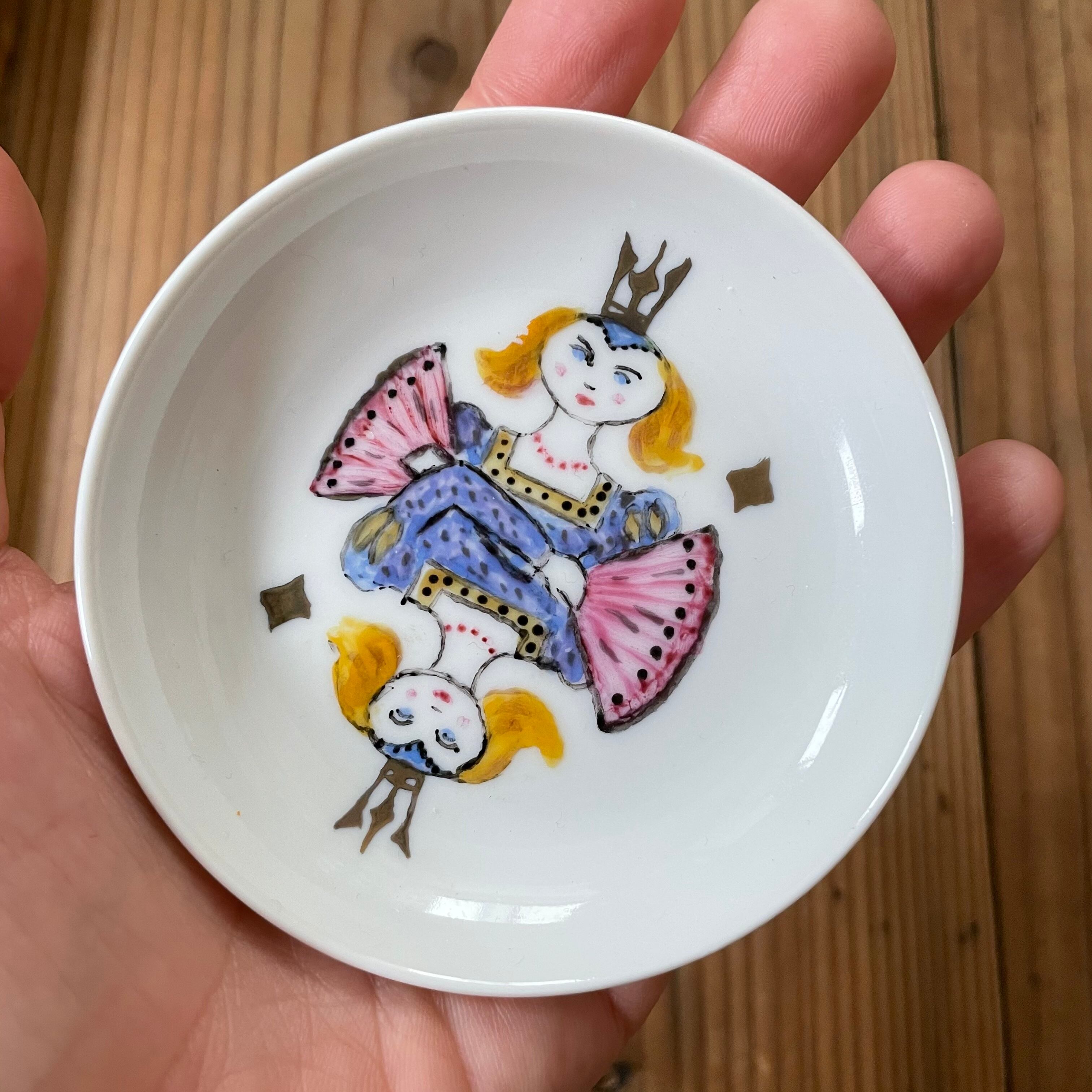 トランプのクイーンをイメージしたのかな?と思える手描き模様の小皿です。