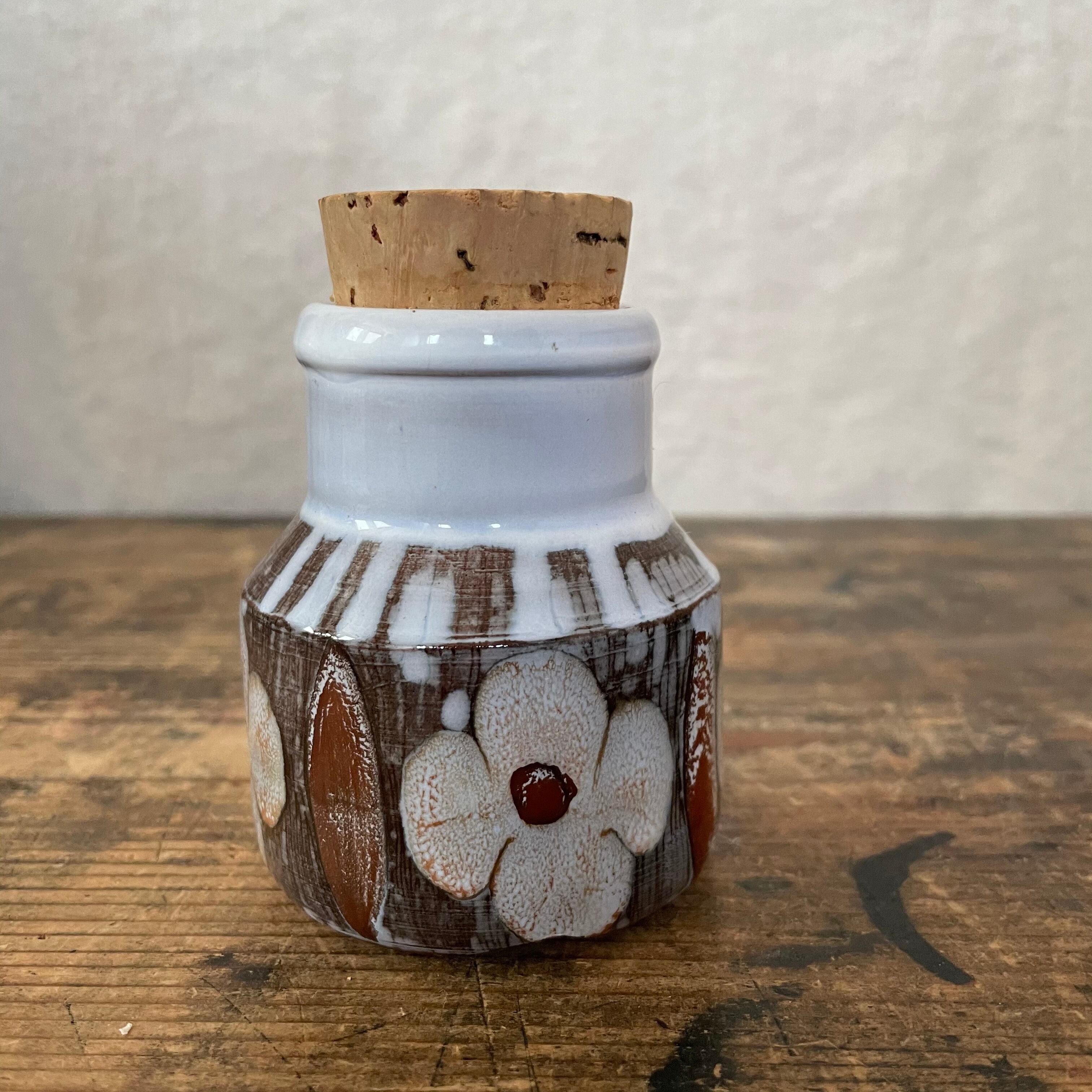 花模様の陶器のスパイスボトルは、落ち着いた色味だけど、模様といい、色むらといい、他にはない感じがします。