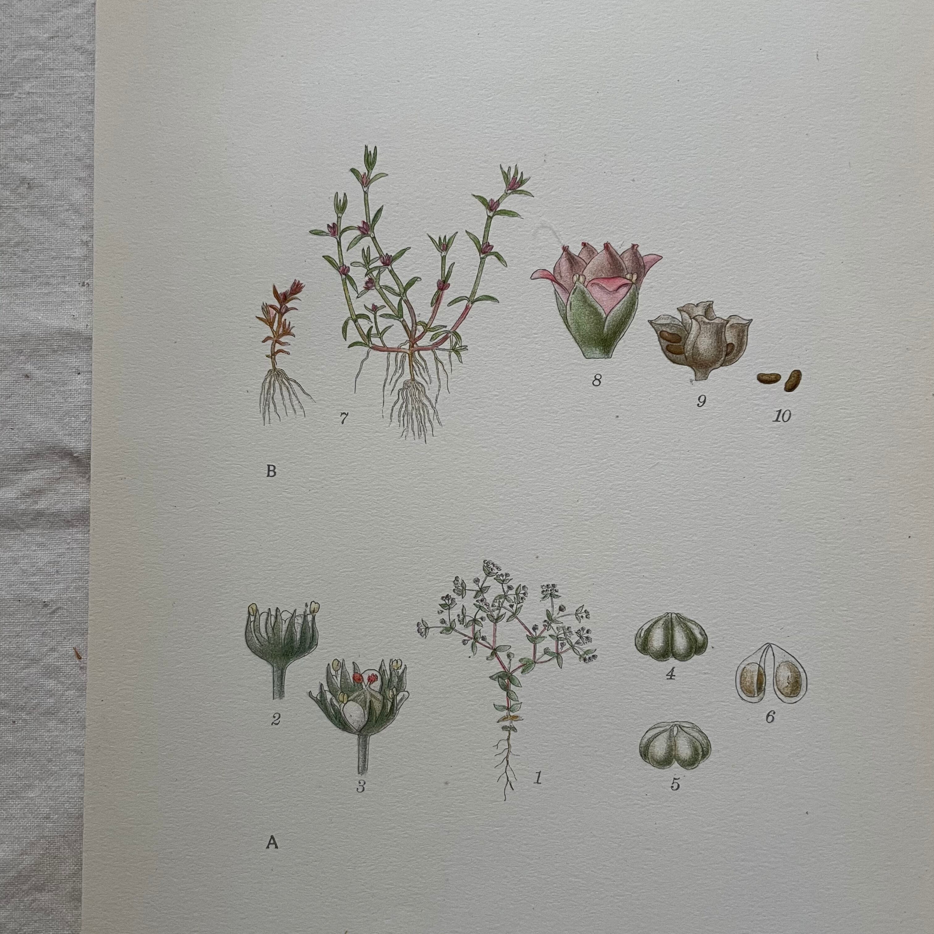 紙は植物図鑑の1ページかな?褪せた色の紙に細かく植物が表現されています。