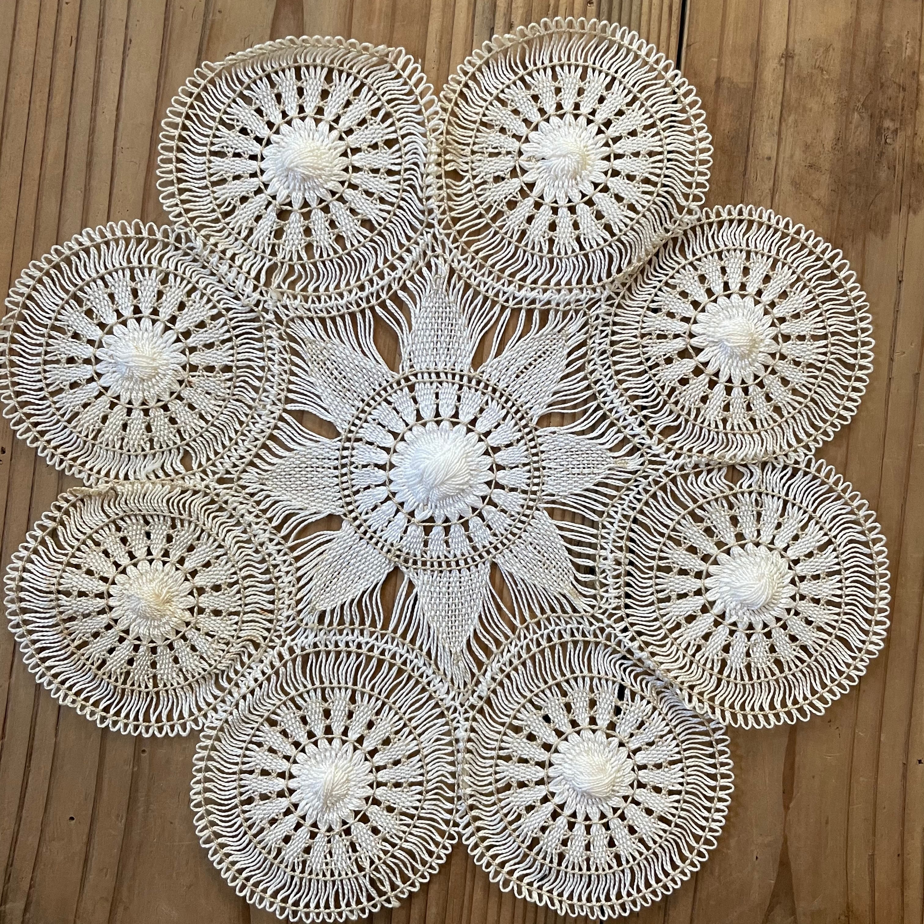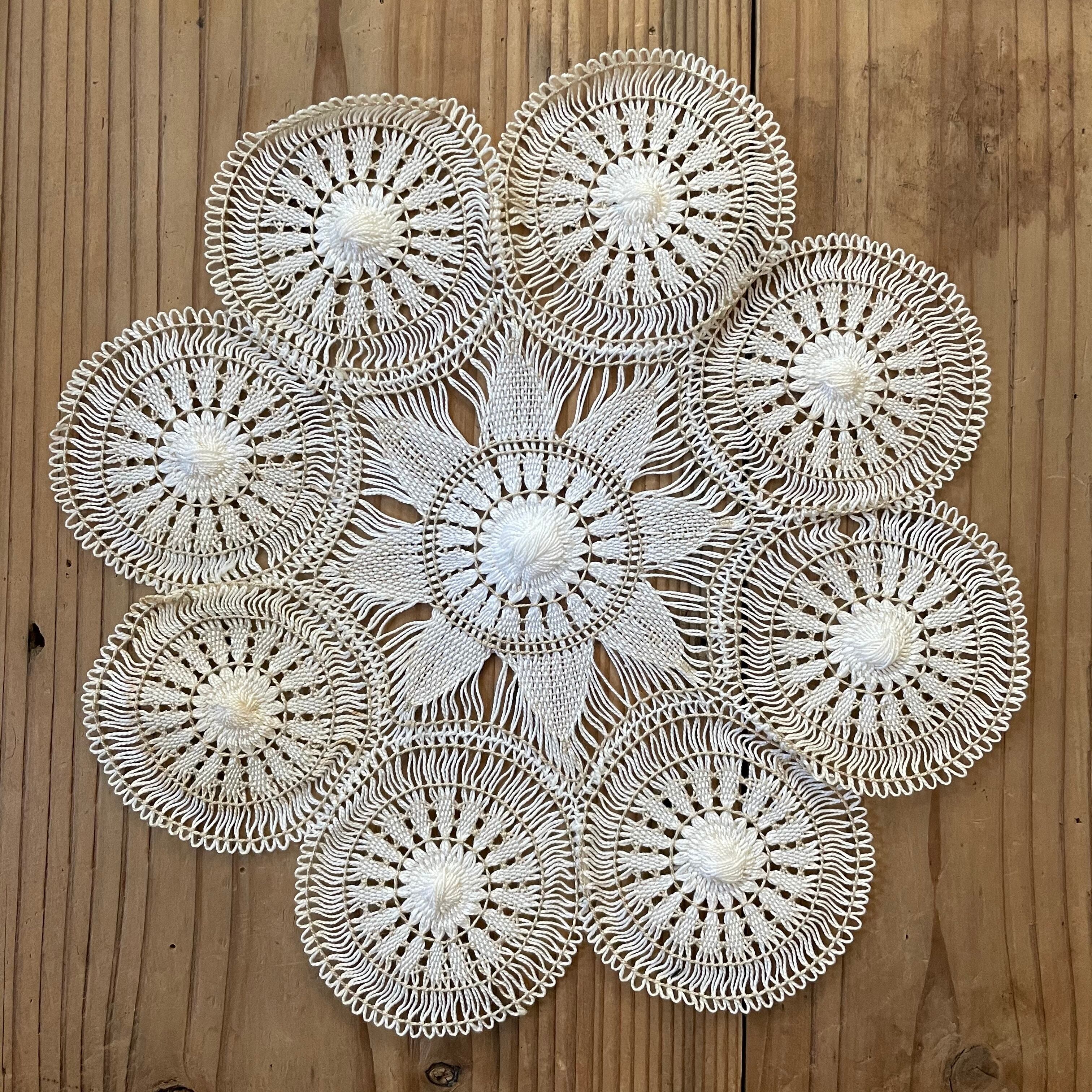 白と生成色の糸で編まれたレースは少し立体感があり、このまま額に入れて飾りたくなります。