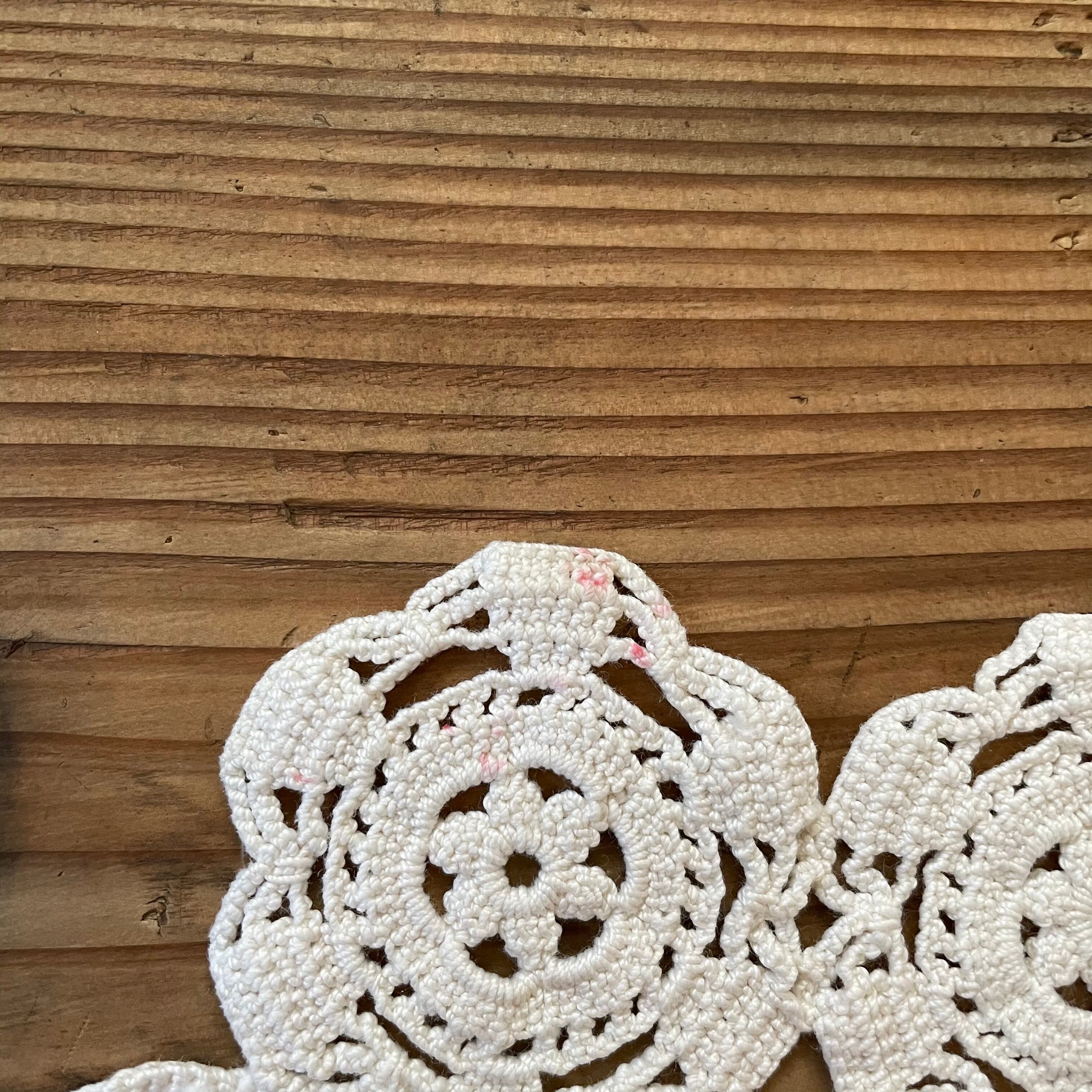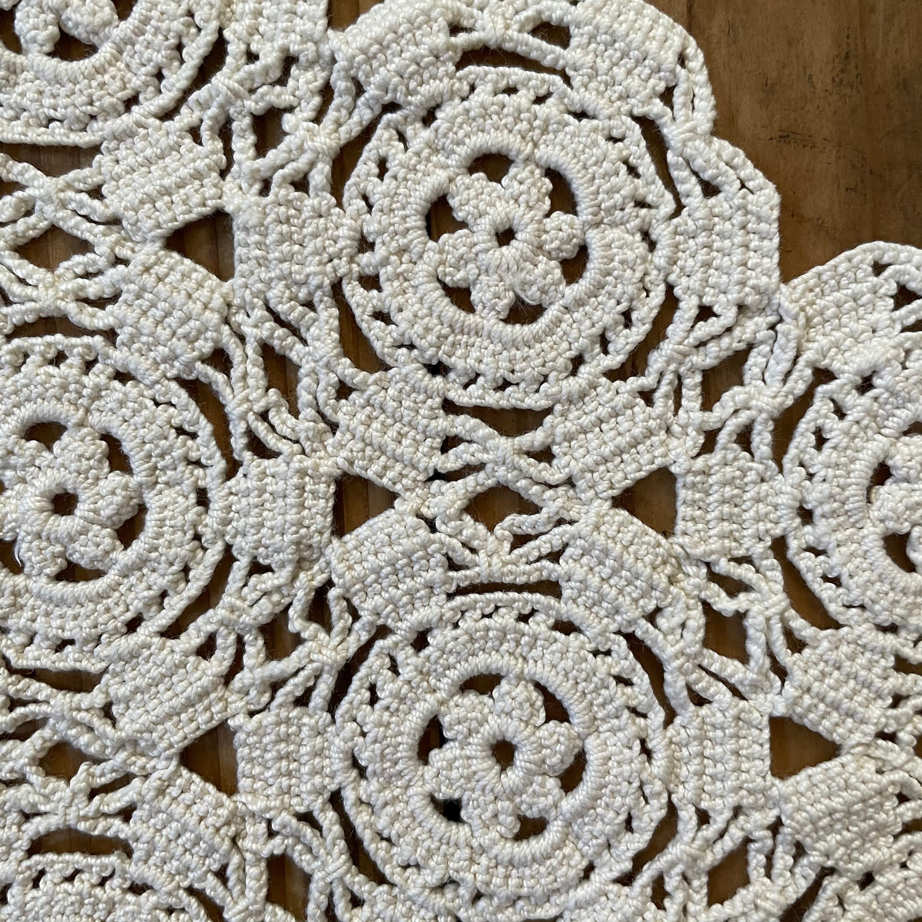 生成色のドイリーはしっかり編まれていて、たくさんの丸が集合したようなデザインです。