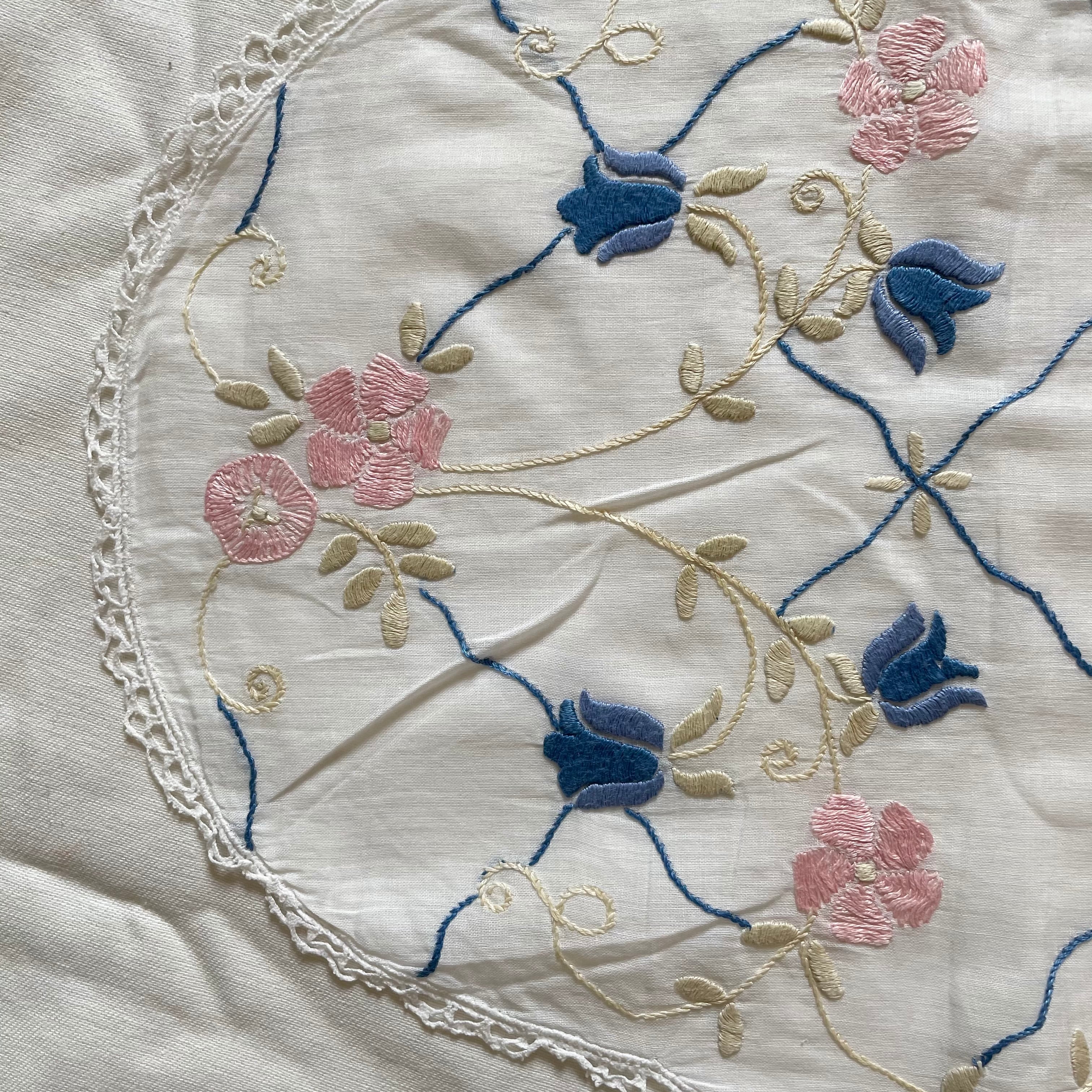 スウェーデンで見つけた繊細な花模様が刺繍がされた布です。