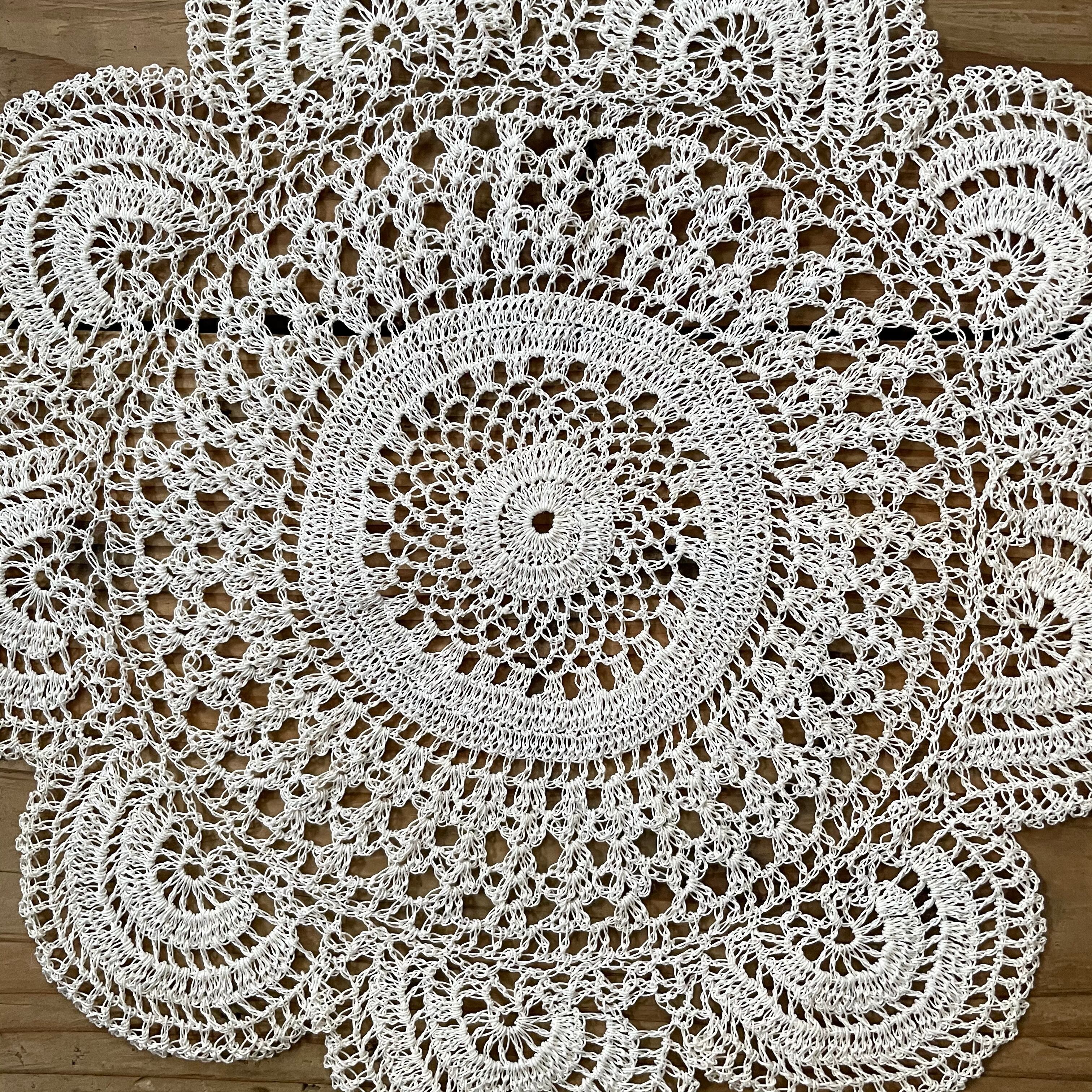 少し硬めの生成色の糸で編まれたドイリーは、糸の1本1本がきちんと編まれていることが見てわかります。
