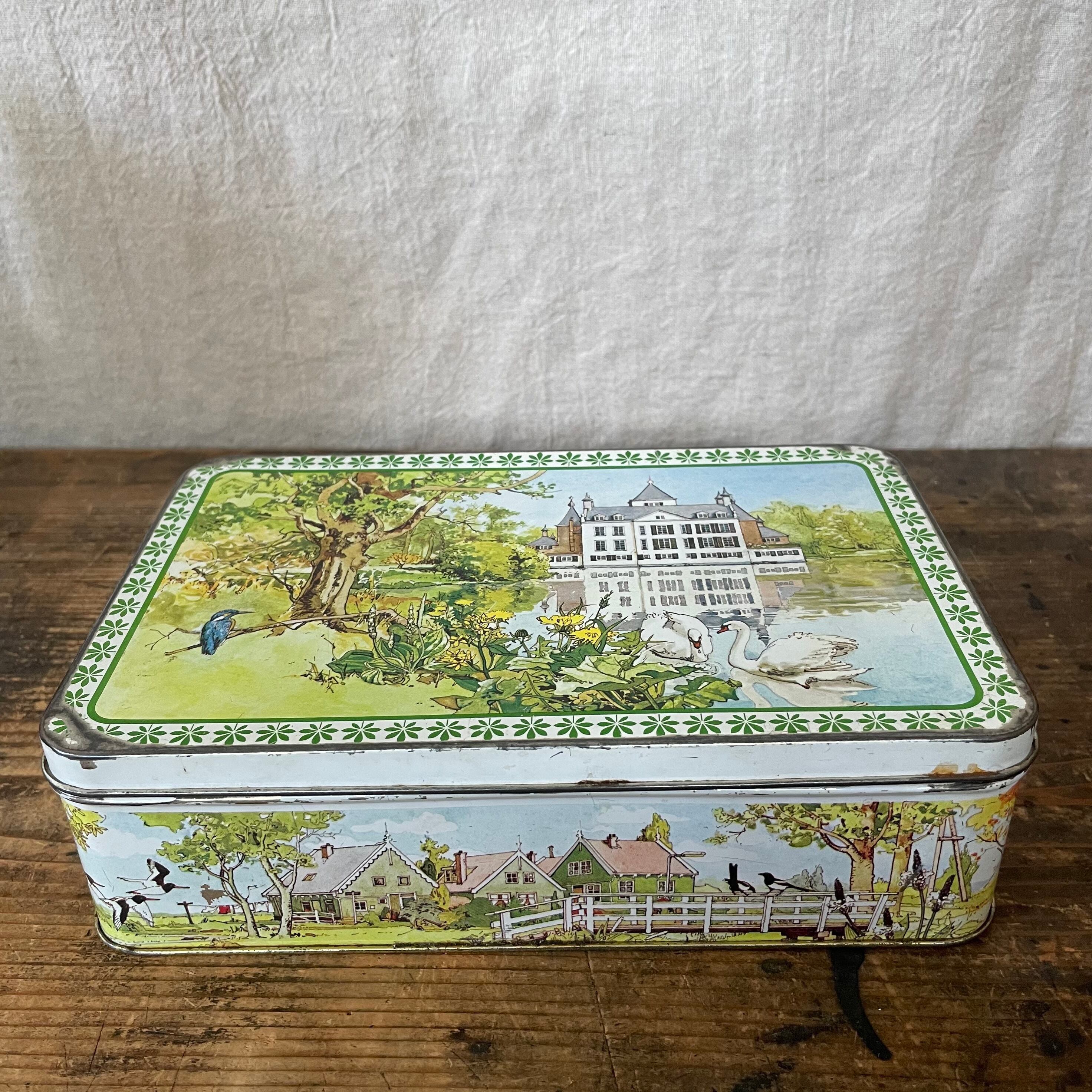 オランダのお菓子メーカーの缶なのですが、風景と動物が描かれていて、素朴であたたかみがあります。