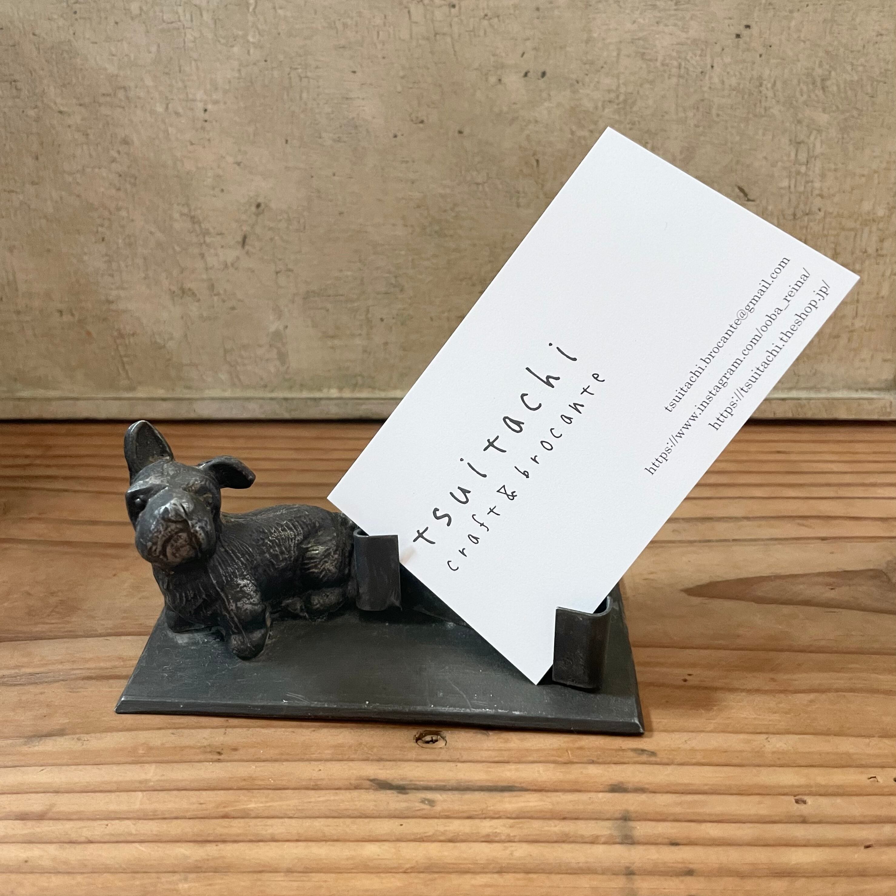 渋い色味と可愛らしい犬、その横にはカードを立てられるスタンド?的なものがついています。