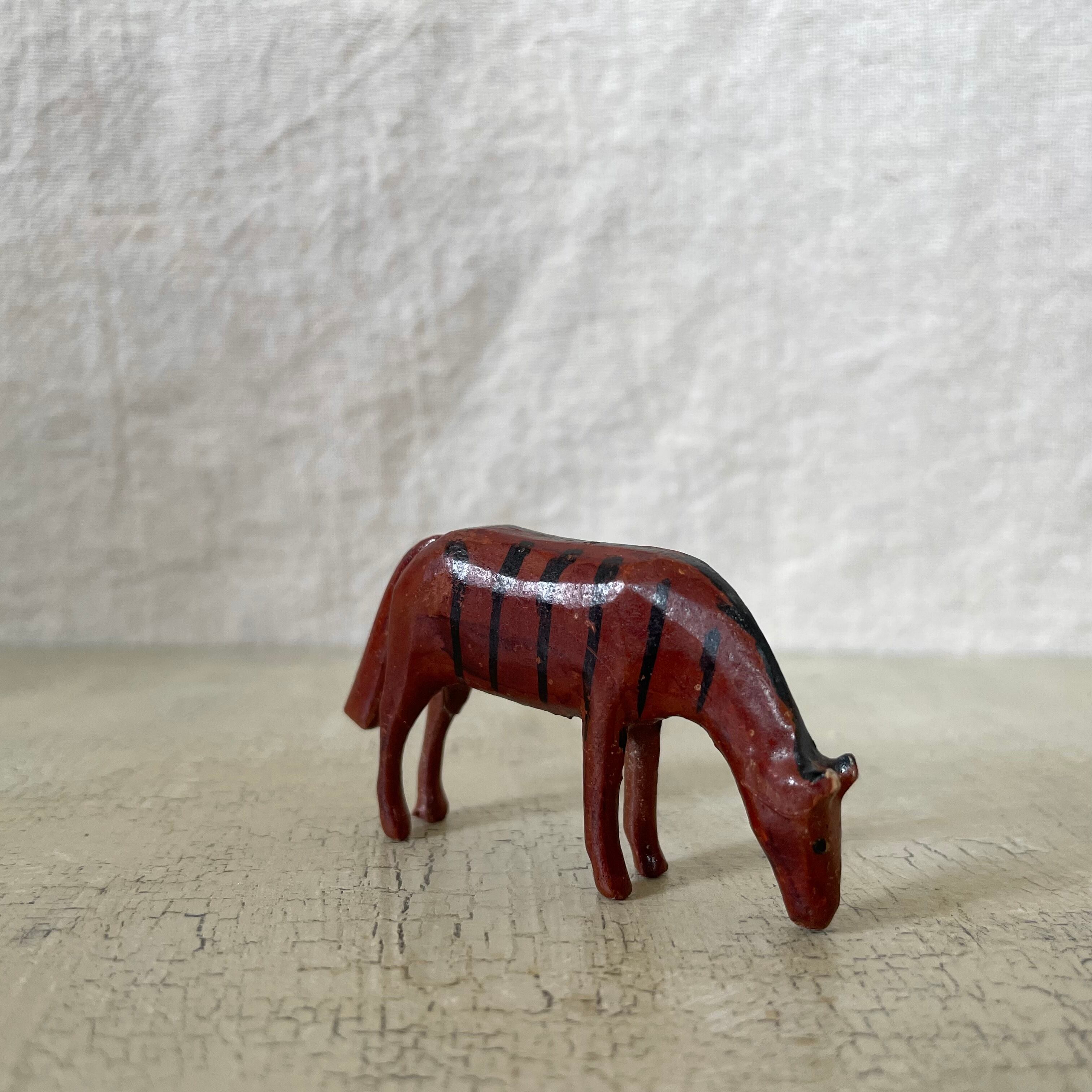 木に着彩された馬は、たぶん地面の草をハムハムしています。