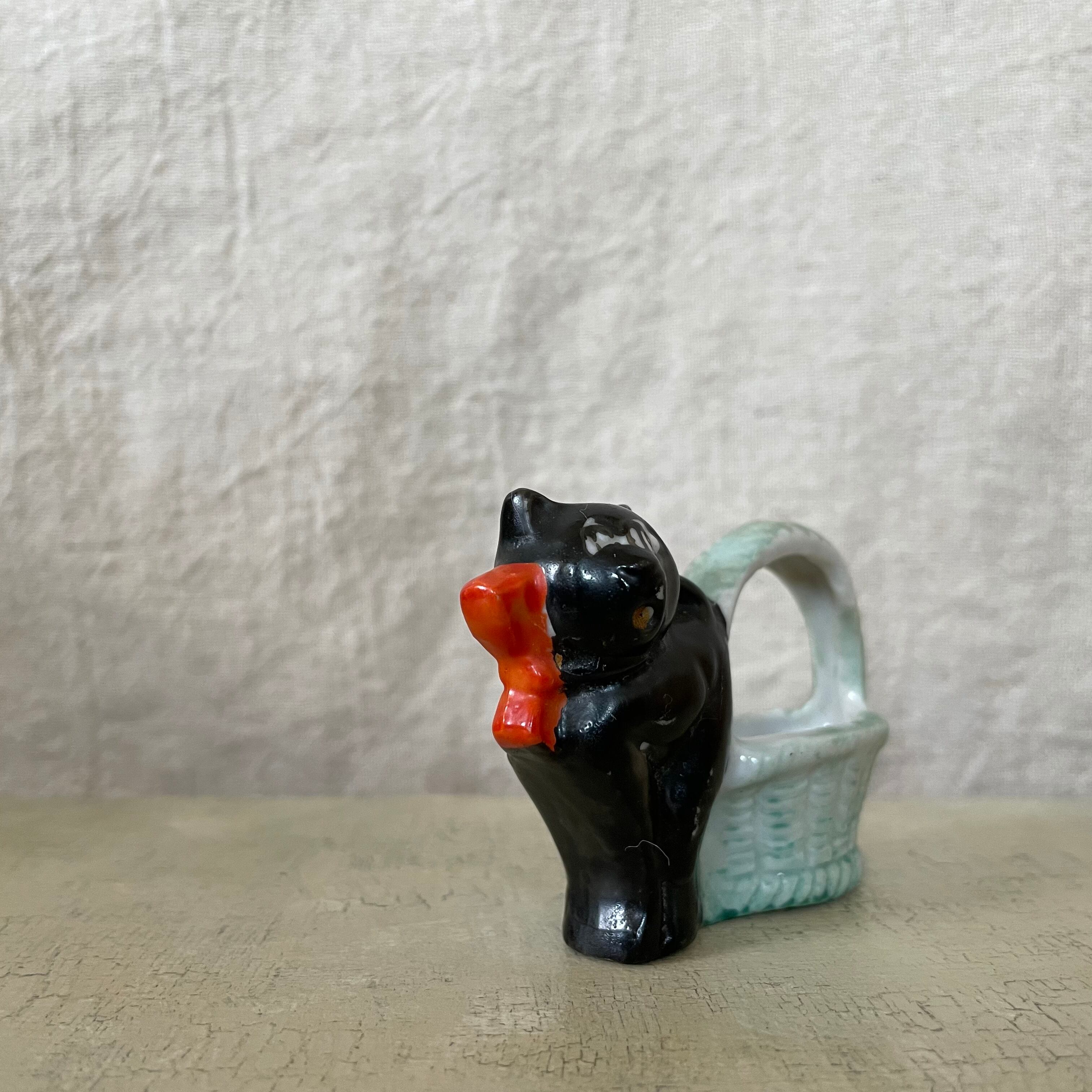 スウェーデンで見つけた陶器製のネコとカゴの置物です。