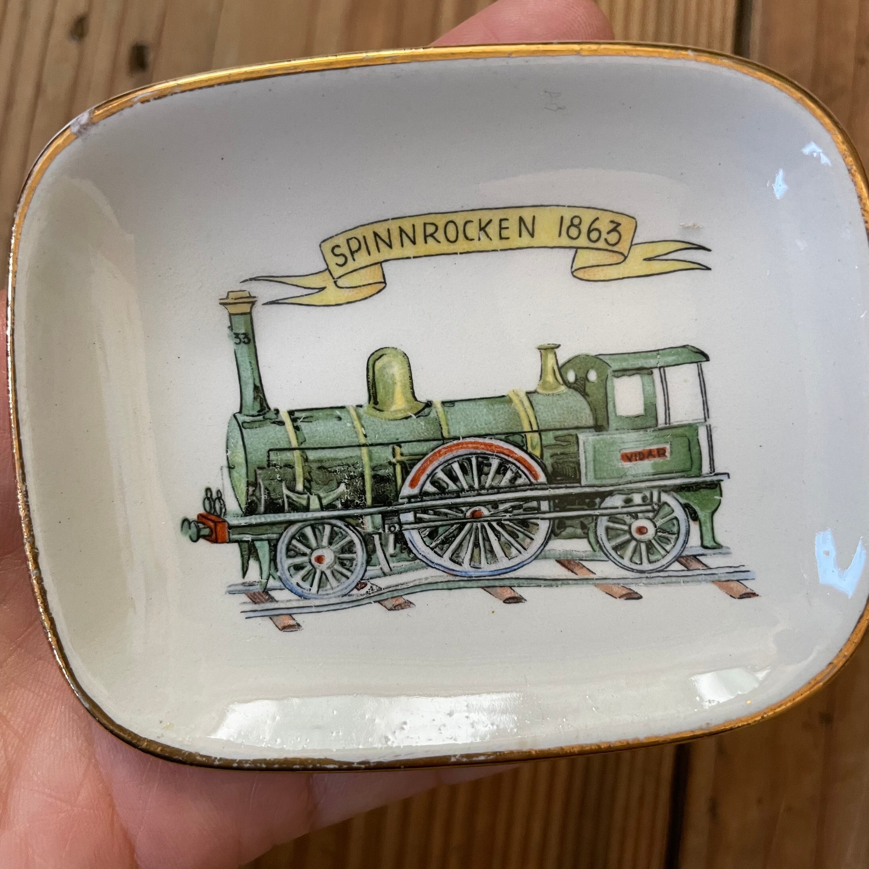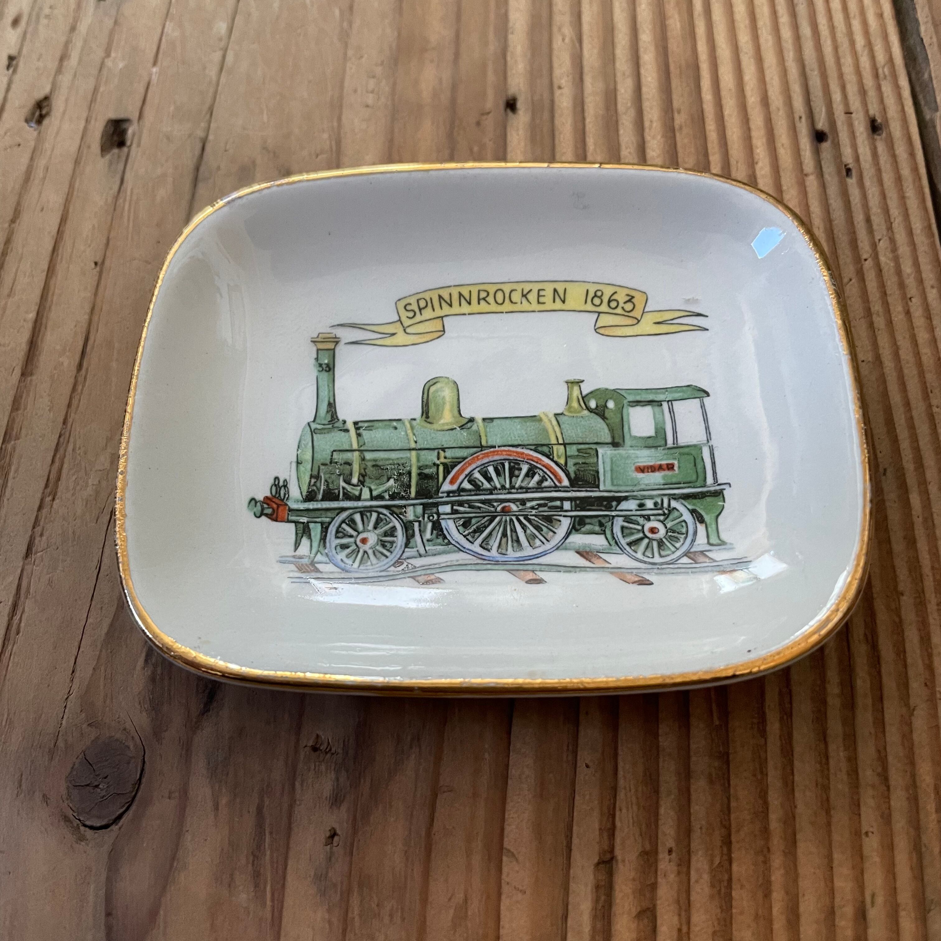昔の蒸気機関車かな?角の丸い小皿に可愛らしい絵がプリントされています。