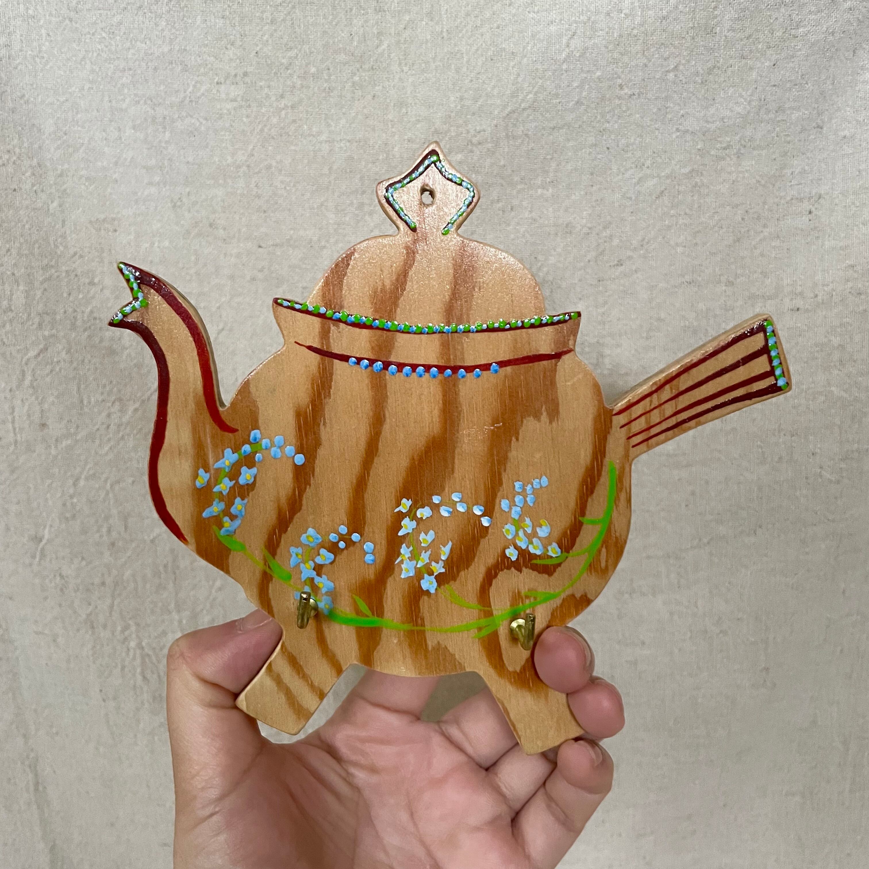 スウェーデンで見つけた木製のヤカン型の壁掛けです。