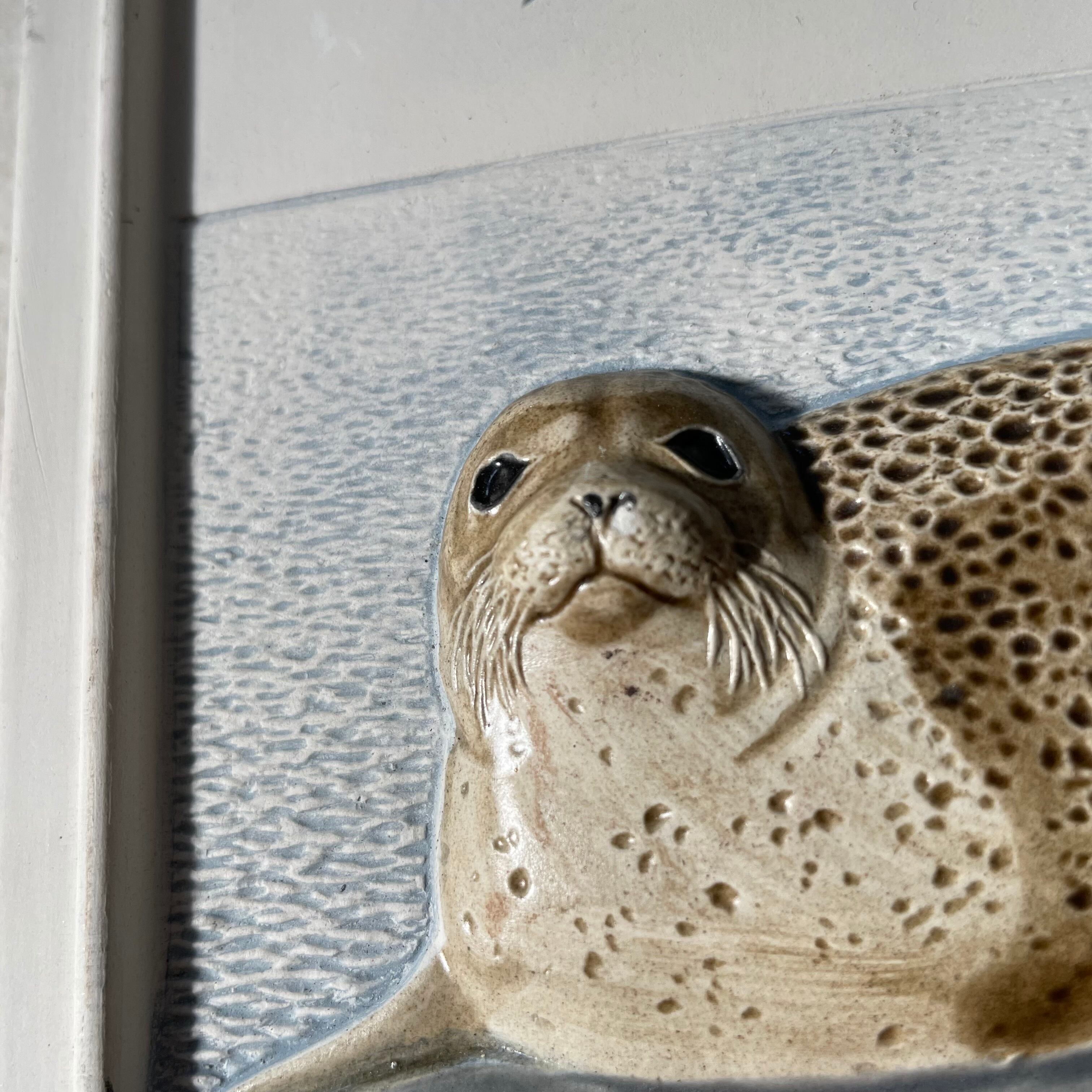 この陶板は、動物など立体になっている部分と、奥の風景など削って描かれている部分があり、陶板に奥行きを感じます。