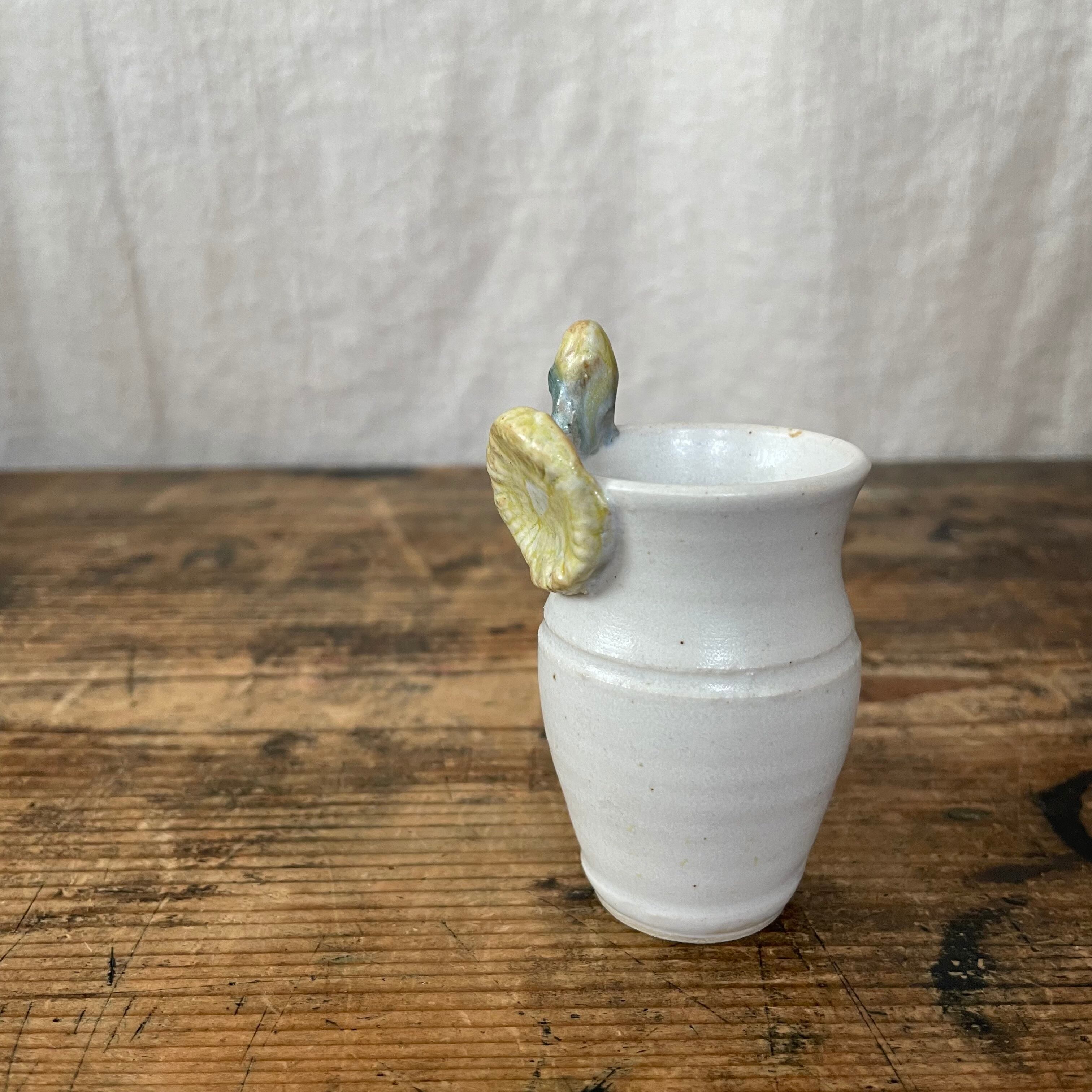 優しいマットな一輪挿しには、フチにちょこんと黄色い花がくっついています。