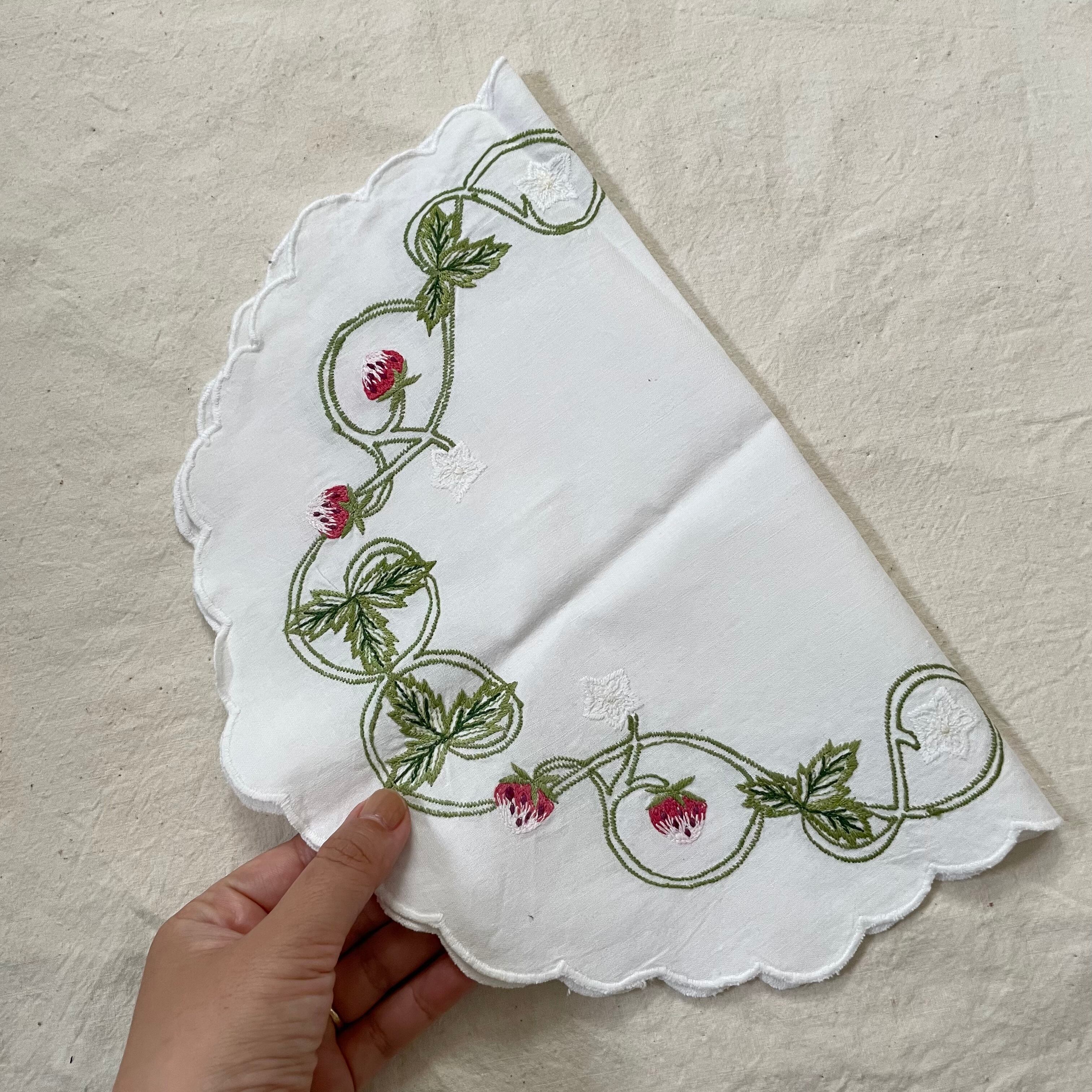スウェーデンで見つけた苺模様の刺繍のオーバルの布です。