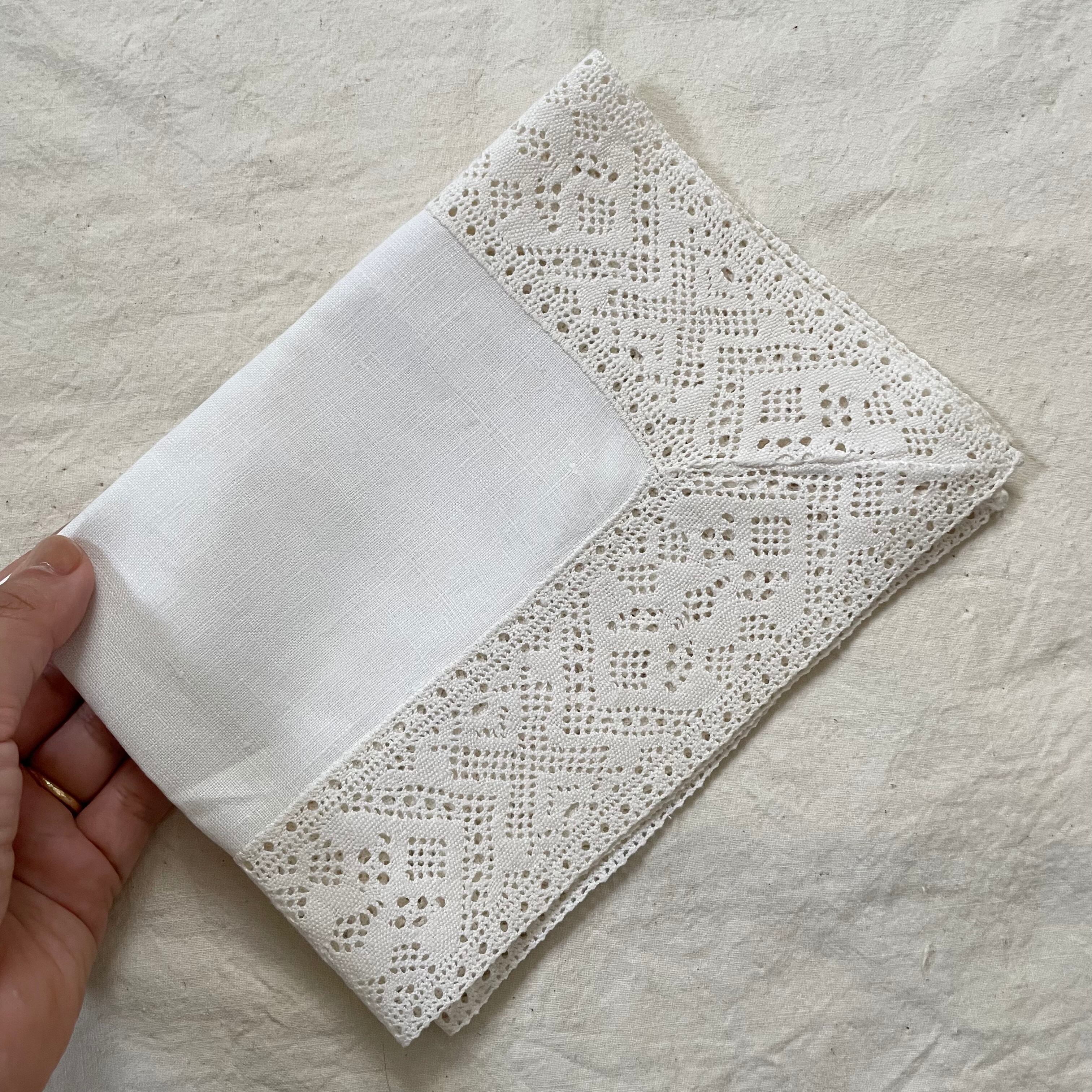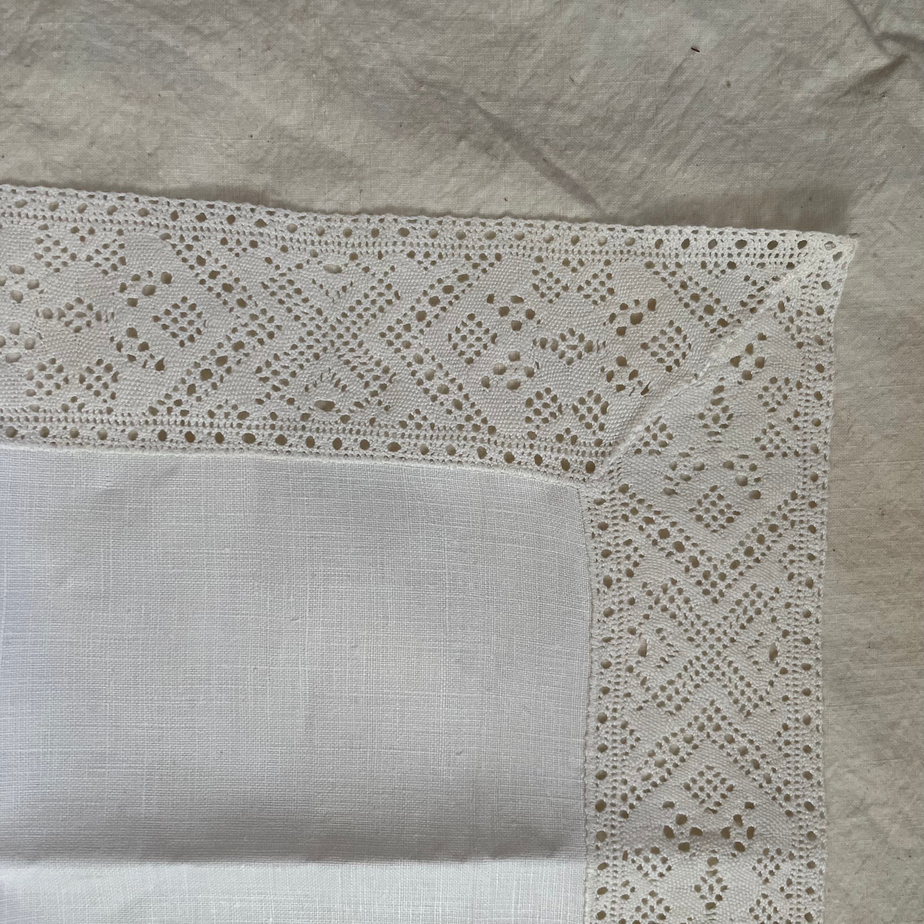 少し生成りがかった白の布はフチに可愛らしいレースがあしらわれています。