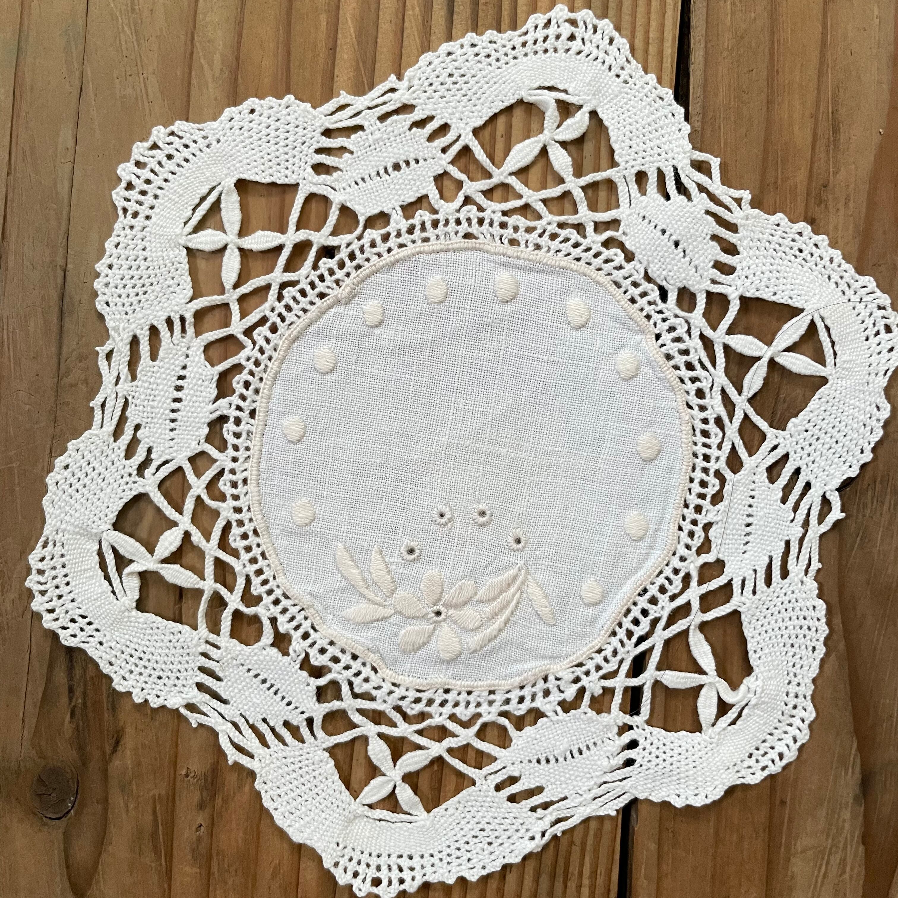 白地に白刺繍のドイリー