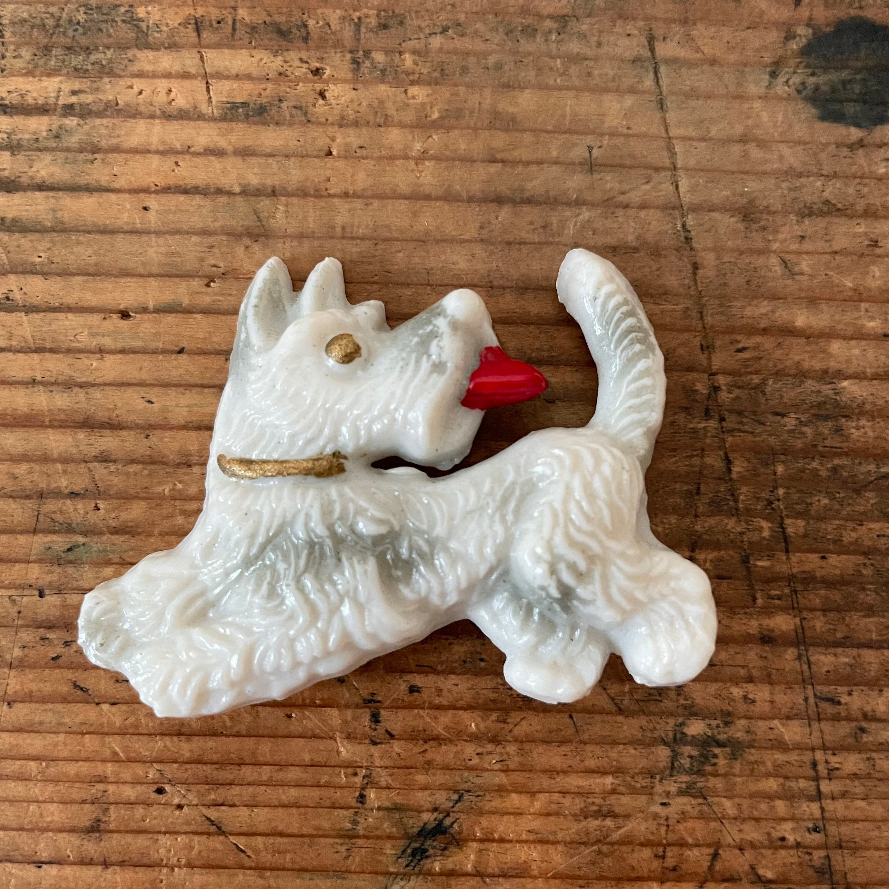プラスチック製のブローチは、振り向きながら舌をぺろりと出している犬が可愛らしいです。