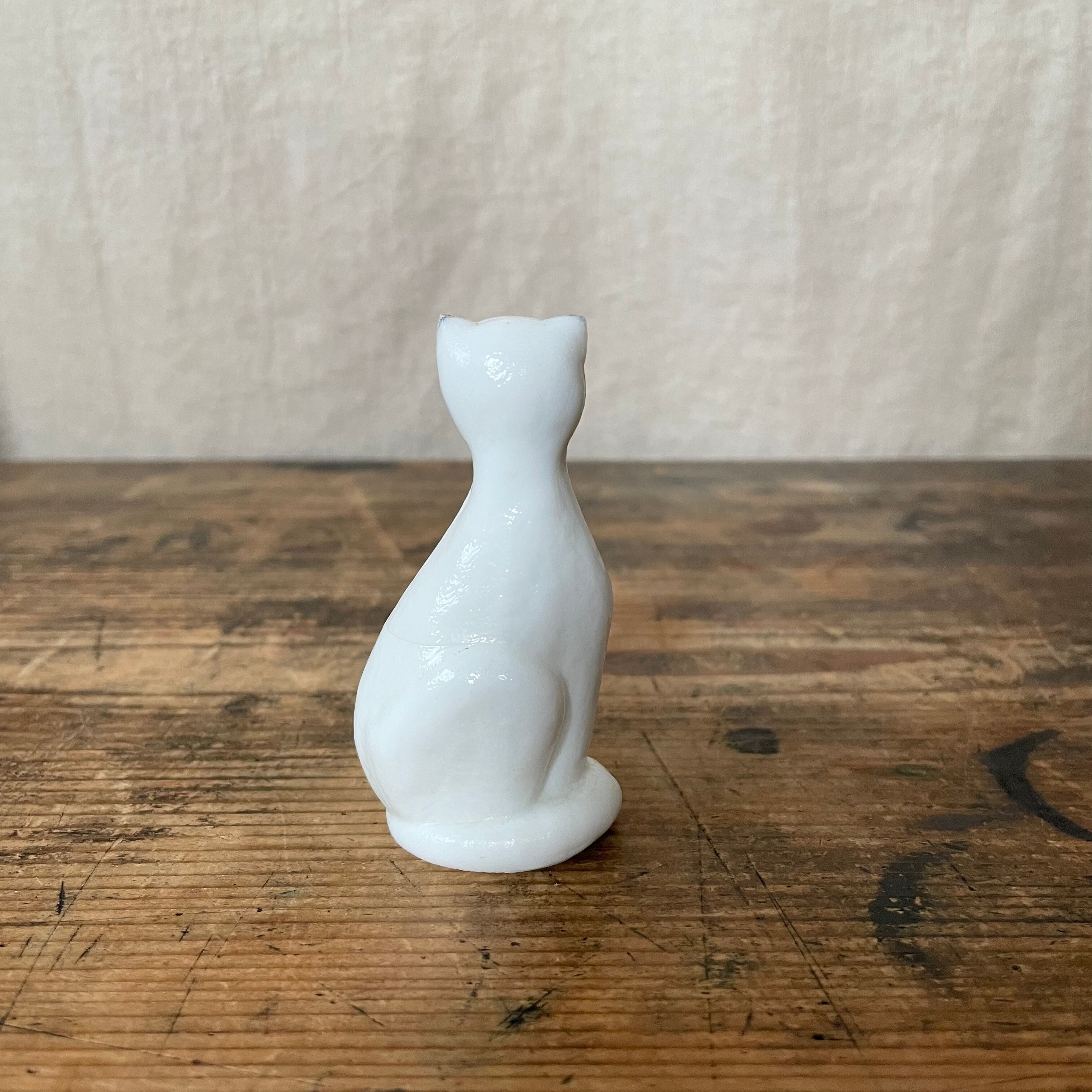 真っ白な石でできていて、少しつりあがった目とピンと立った耳が特徴的です。