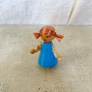 2つ結びがかわいらしい小人は、腕はモール、手は木でできています。