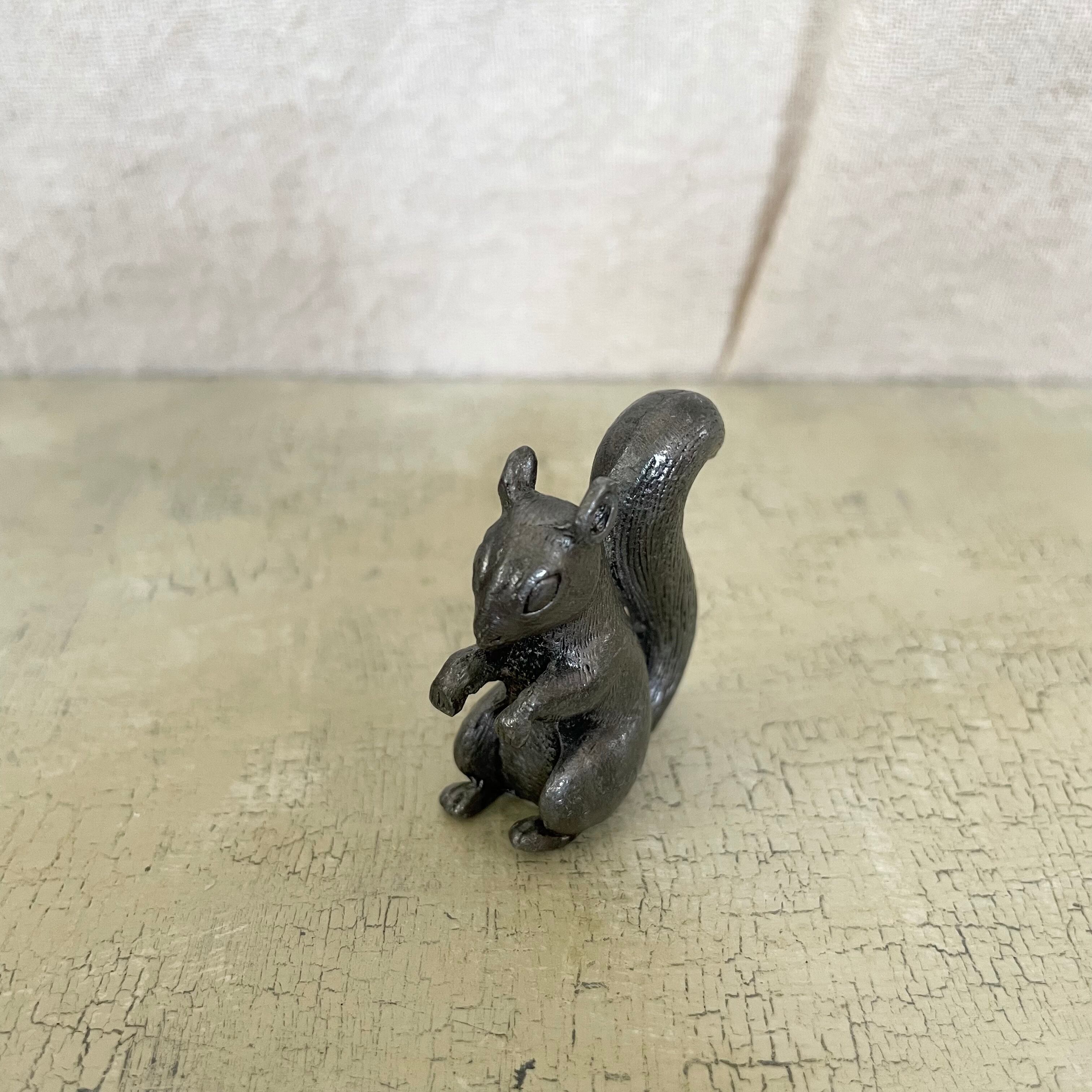 リスの置物といえば、木の実を持っているものが多いのですが、この子は木の実を持たずに、なぜかお化けのような手のポーズをしています。