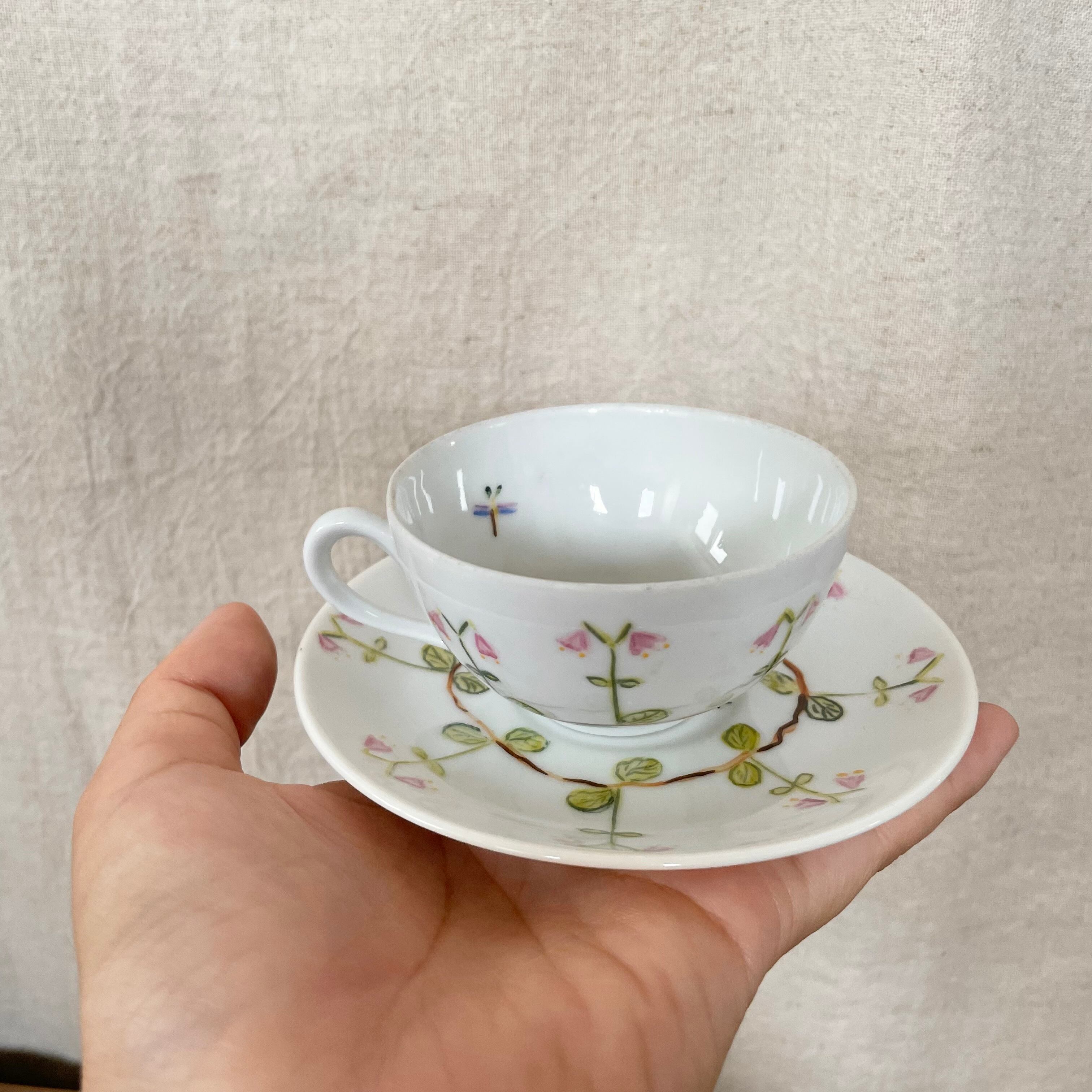 スウェーデンで見つけた小さな手描きのカップ&ソーサ―です。