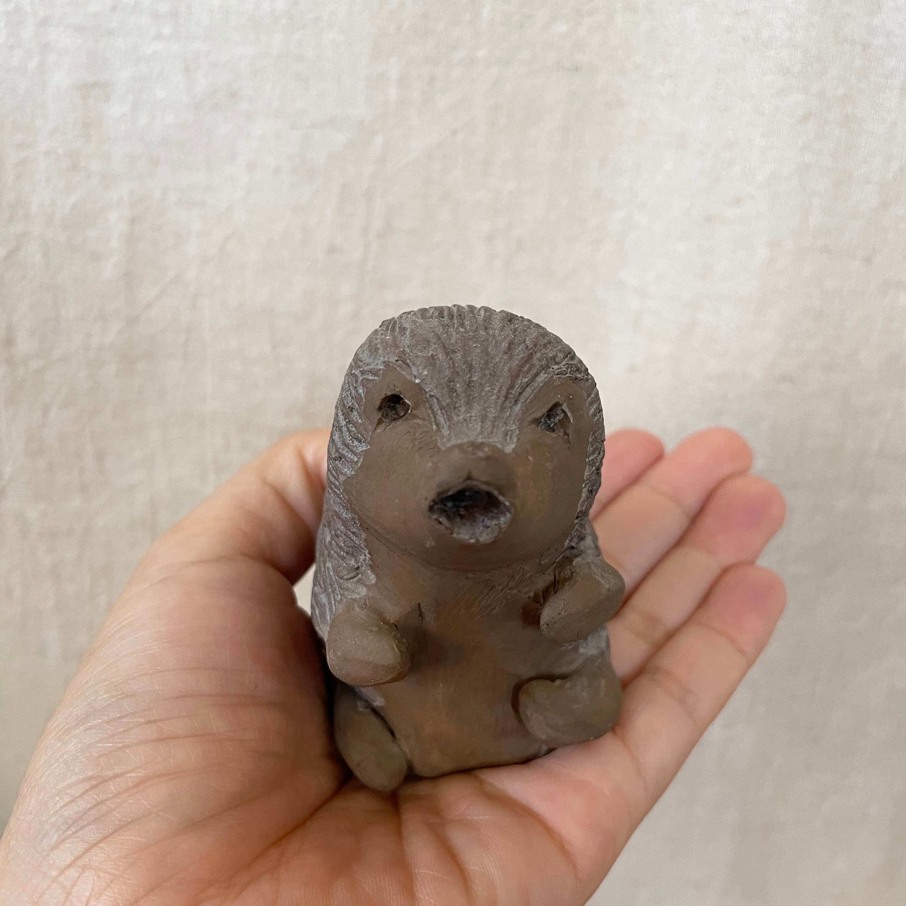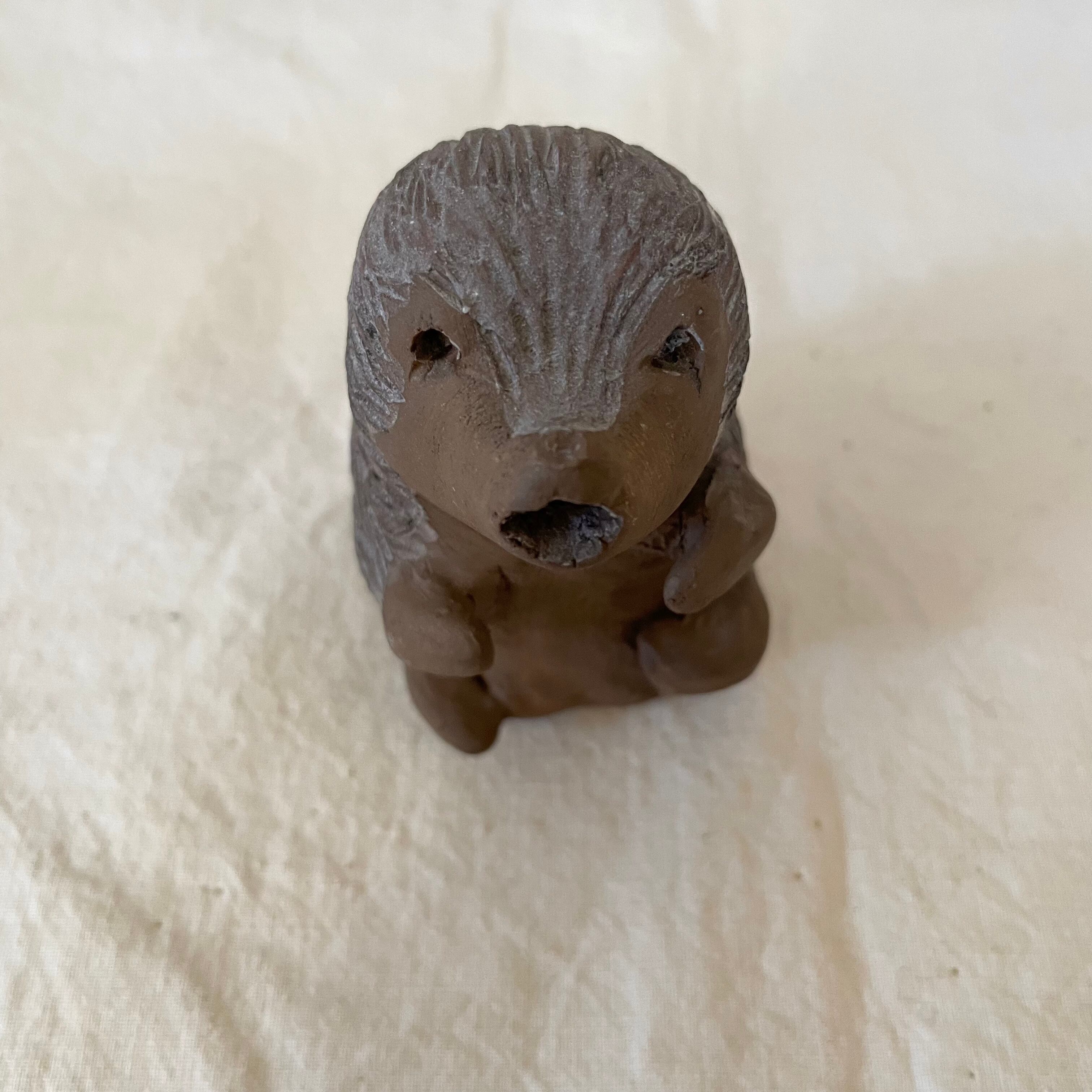 手作り感満載のハリネズミはごきげんな笑顔です。
