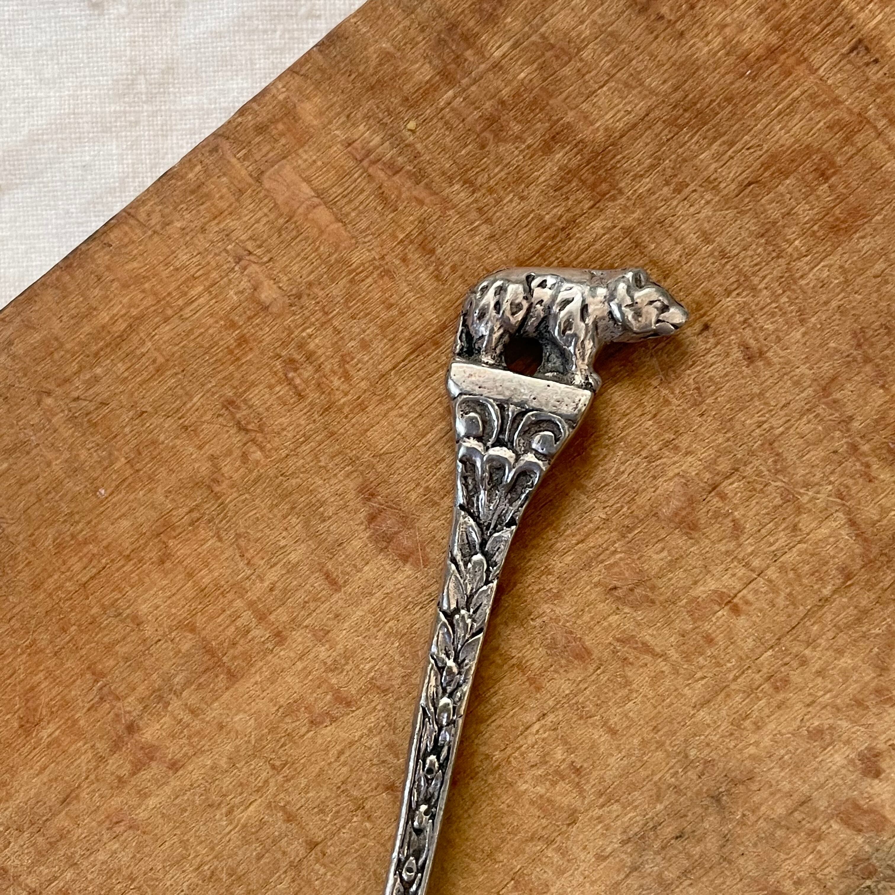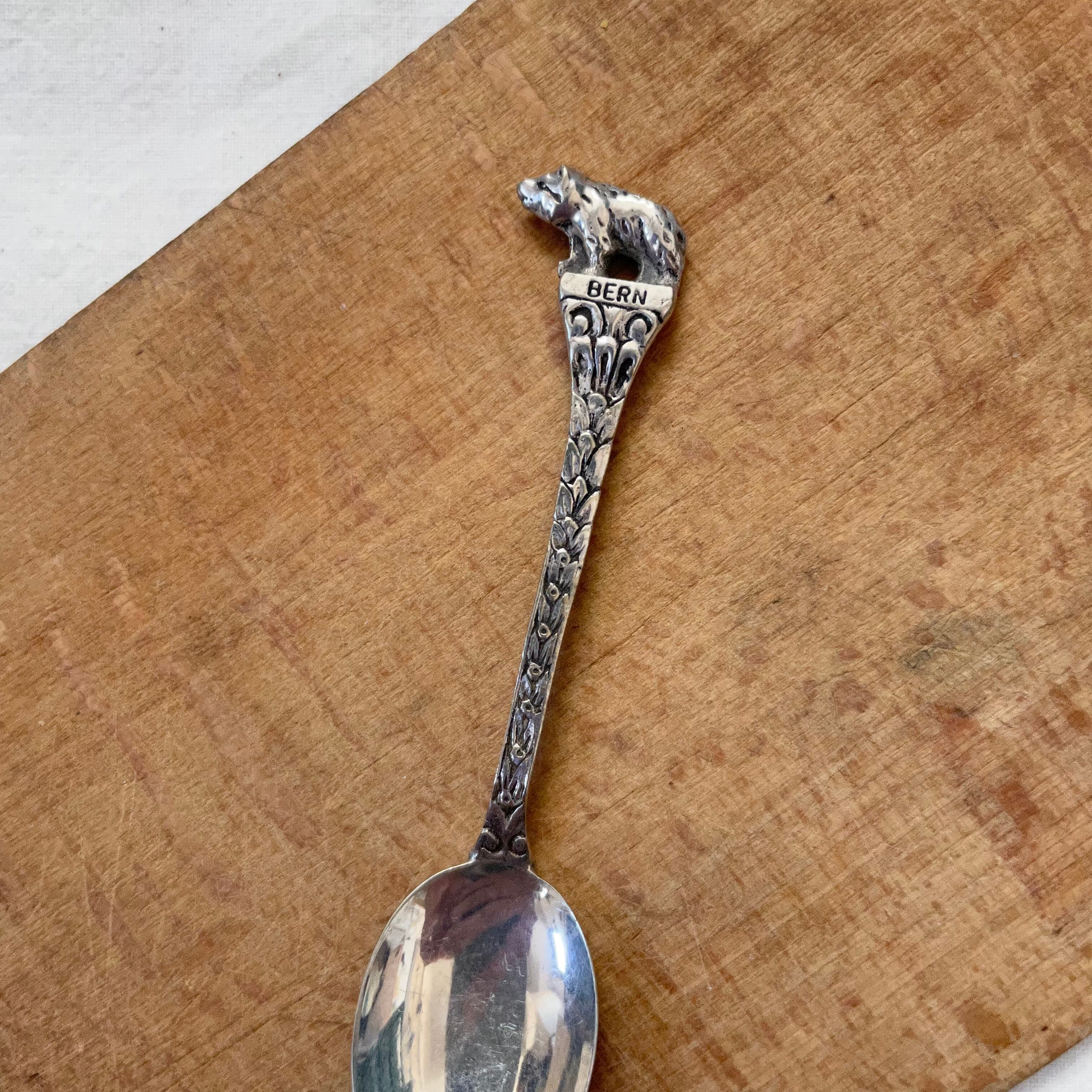 小さくてシンプルなスプーンには、立体的に表現されたずんぐり目のクマがいます。