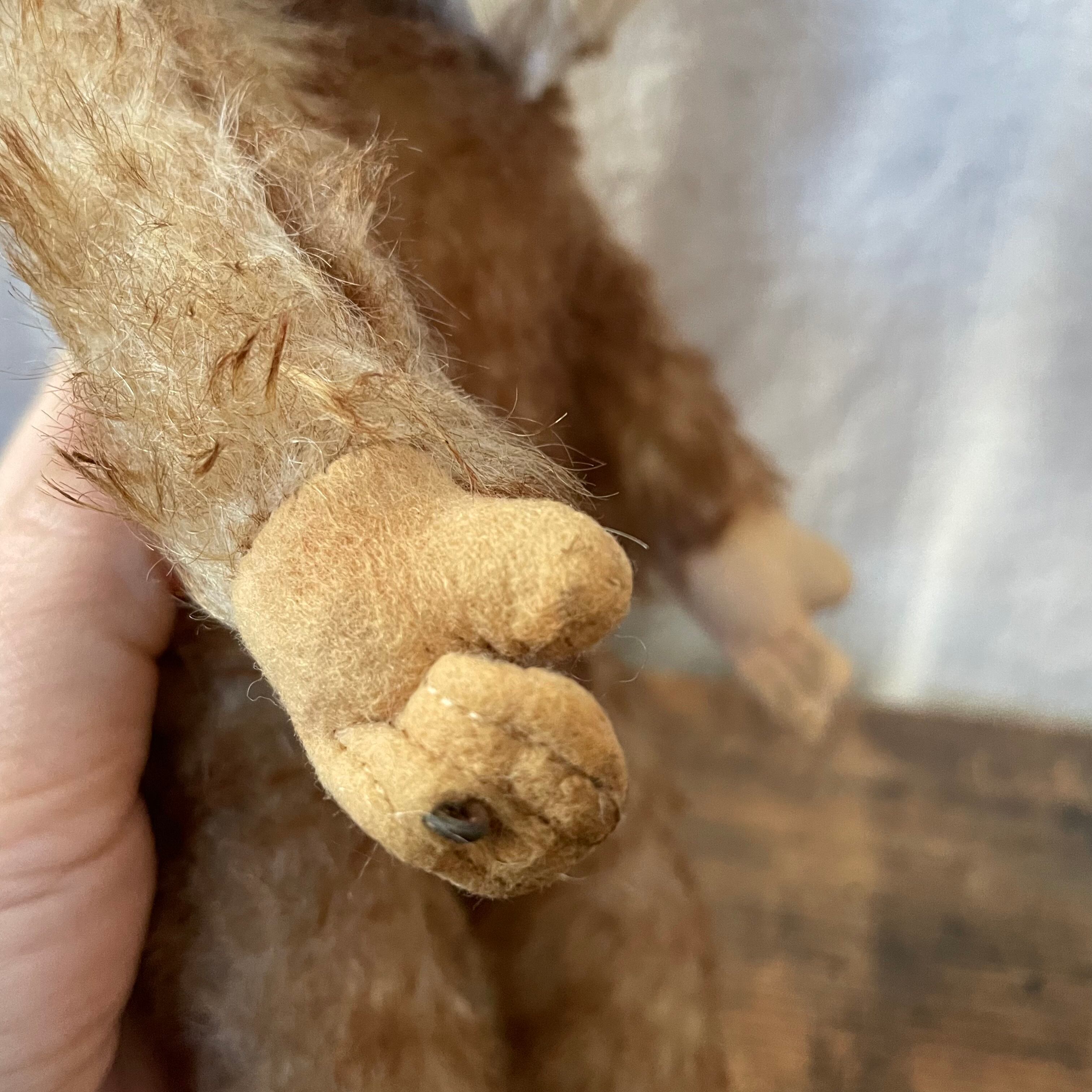 鼻の下あたりに布がすれてない箇所、手足に中のワイヤーが見えている箇所などの傷みがあります。