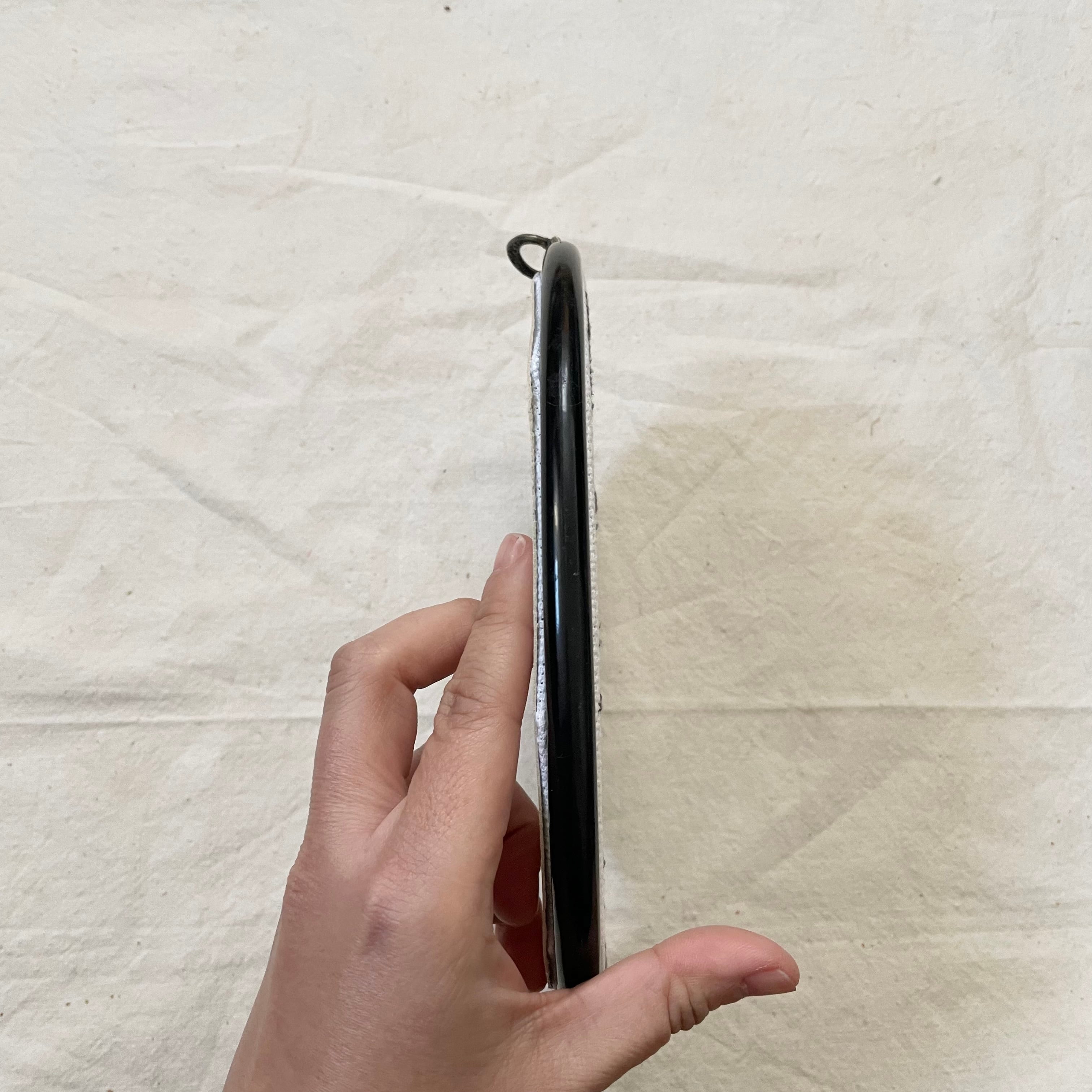 黒いフレームに、白地に黒い糸でクロスステッチ刺繍と、珍しいモノクロなアイテムです。