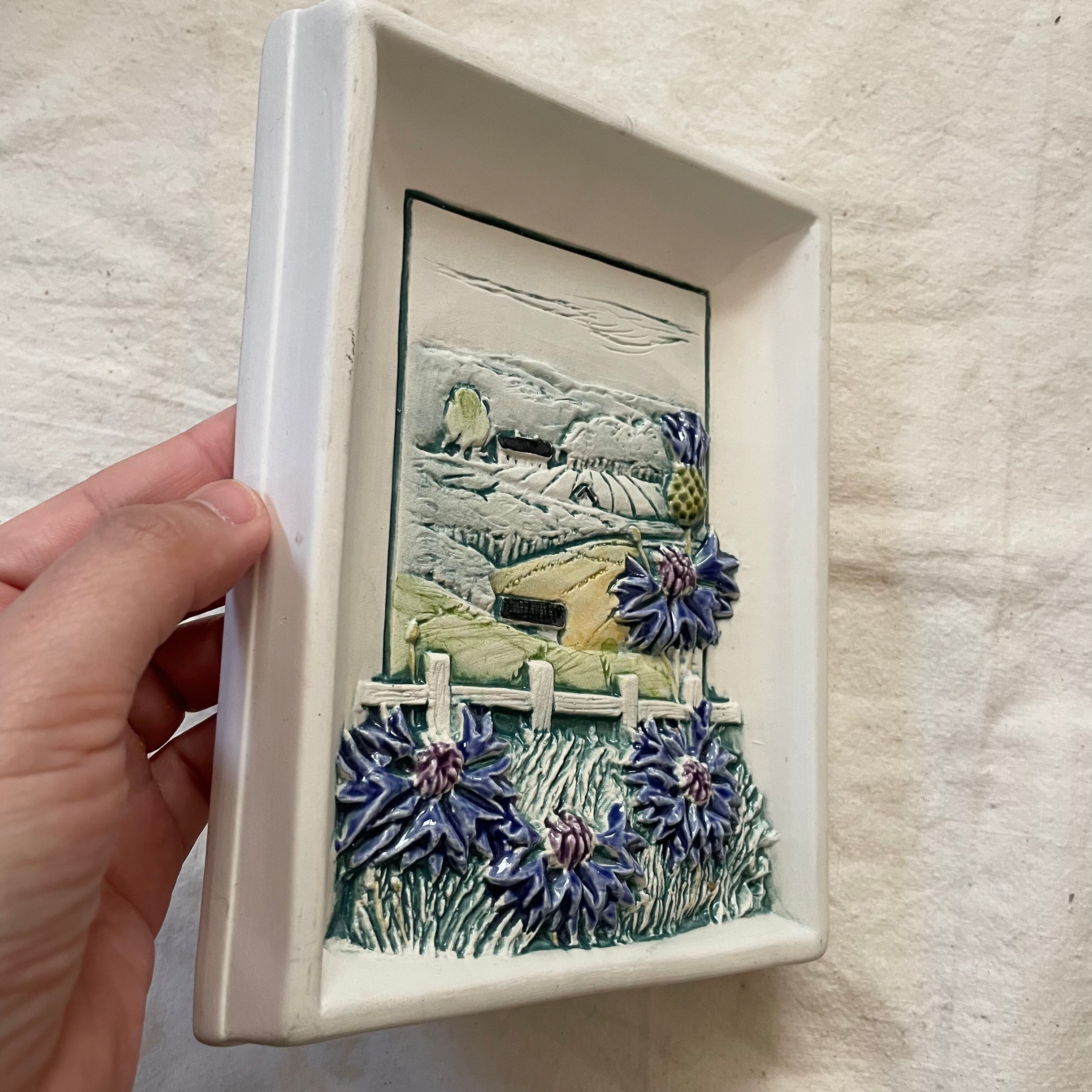 盛り上がった縁が額縁のようで、1枚の絵を飾るように陶板を飾ってほしいなぁと思います。
