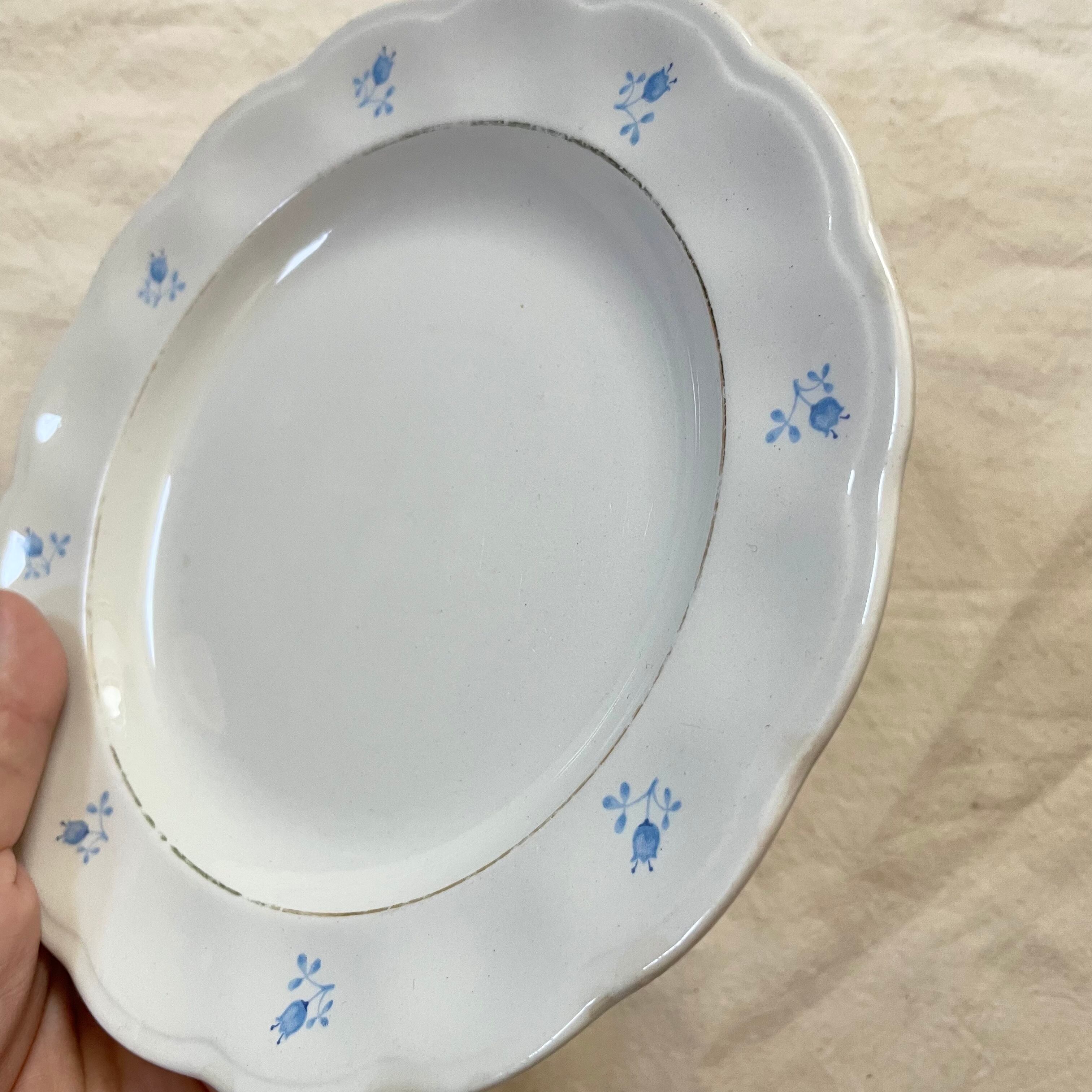 多少カトラリー跡、ふちの傷みはあります。