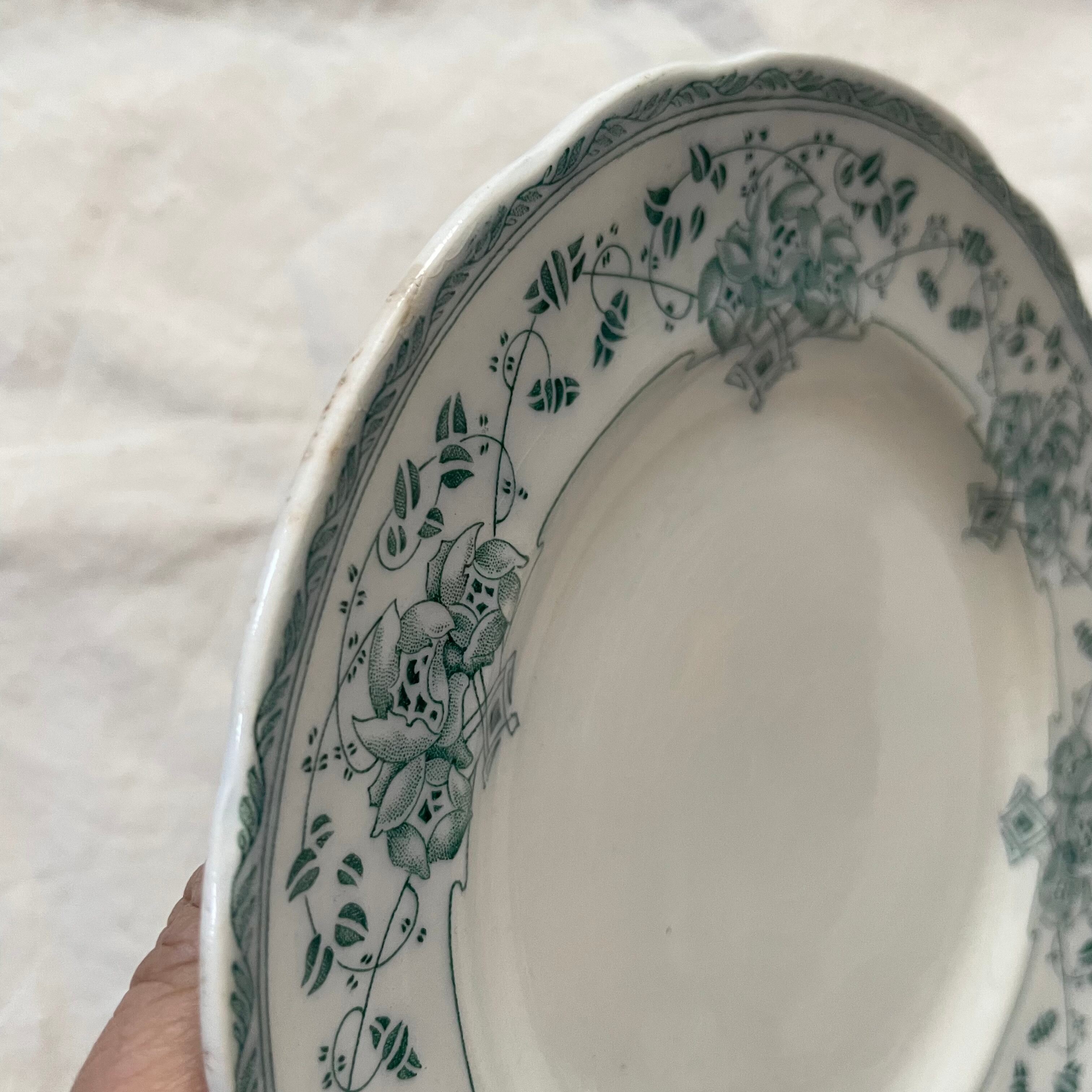 80~100年前くらいのケーキ皿は、絶妙なグリーンの色合いと繊細な模様が素敵です。