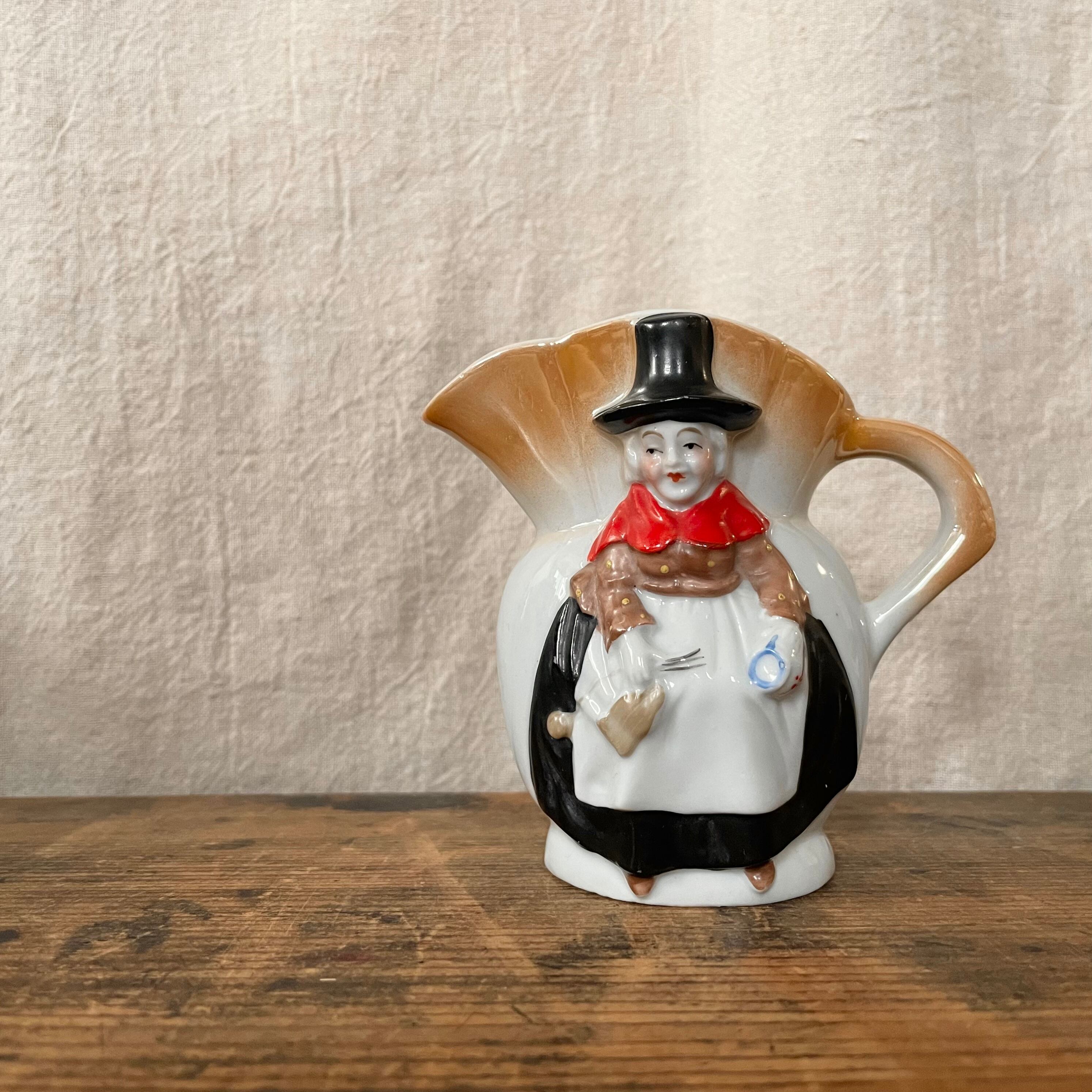 立体的に表現されたマダムがかわいらしいピッチャーです。