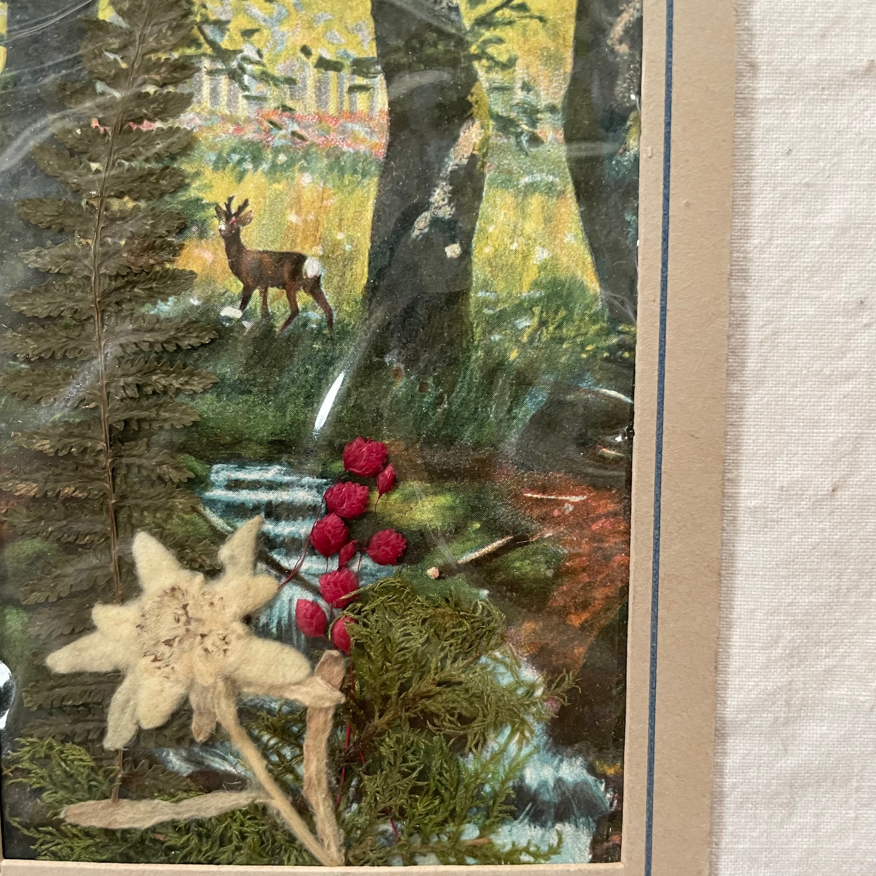 水彩画タッチな背景の絵と封入された植物のバランスがよく、このまま飾っておきたくなります。