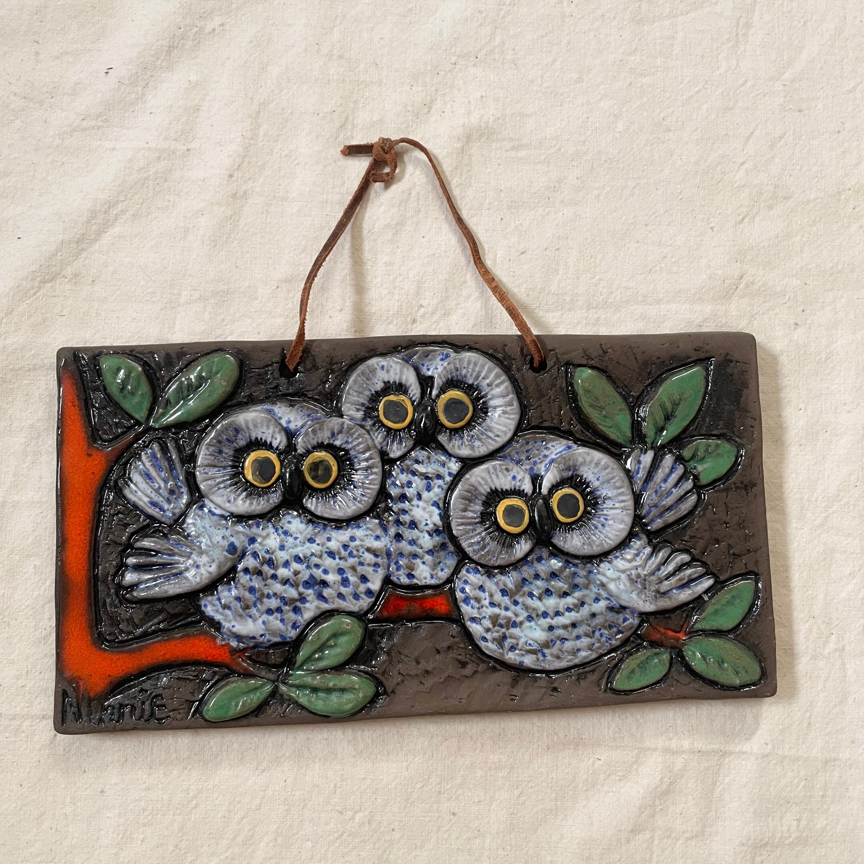 スウェーデンで見つけたフクロウの陶板です。