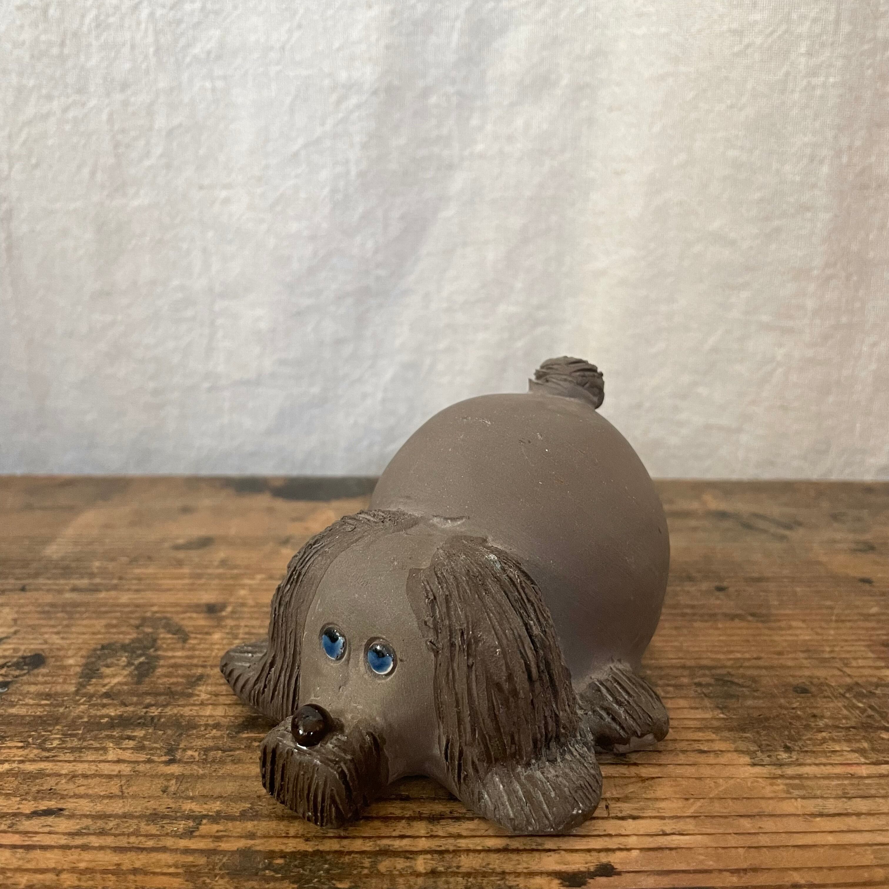 丸っとしたフォルムに、クリっとした瞳と鼻、べったっと伏せをしたかまってほしそうなポーズがかわいらしいです。