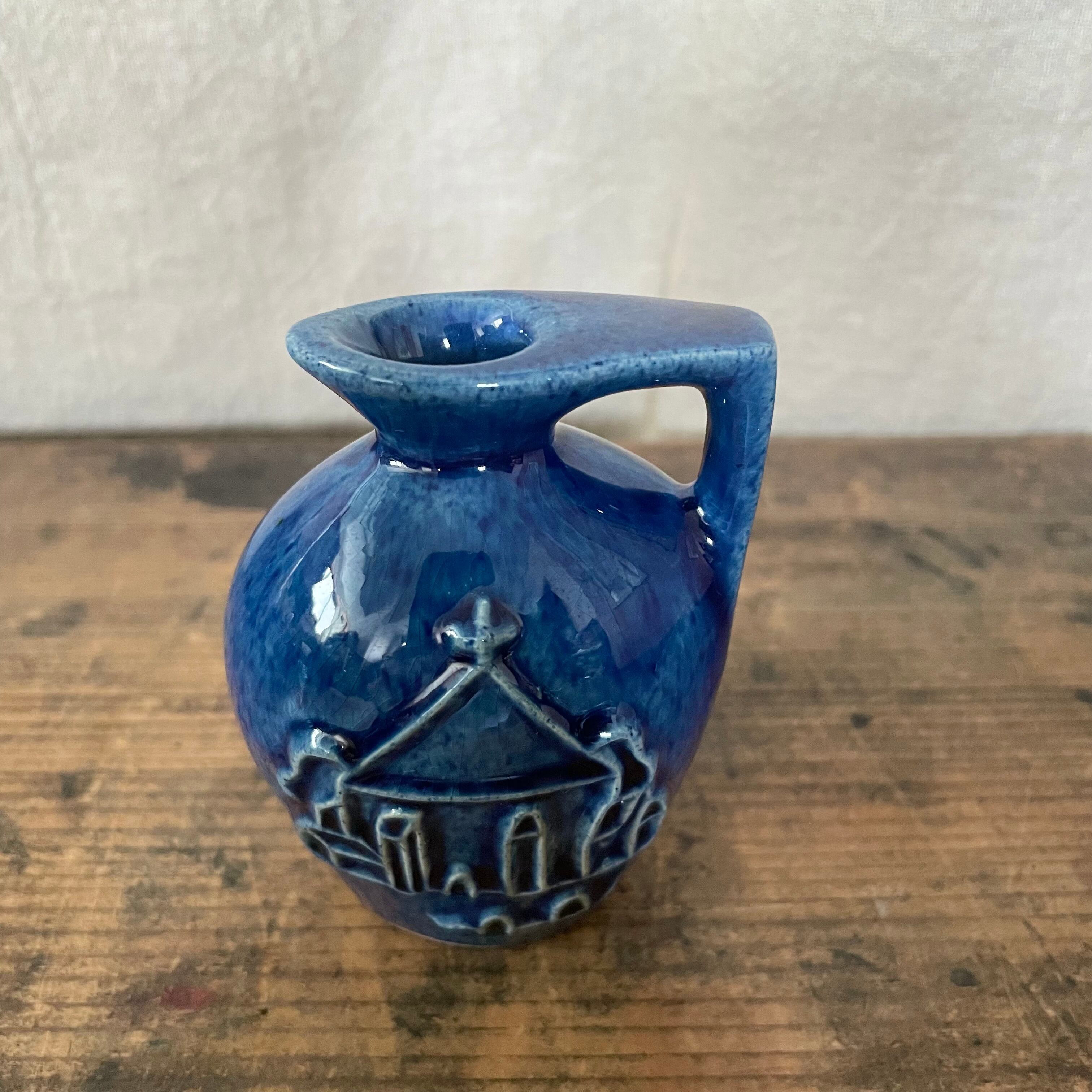 これでもかというくらいのブルーの一輪挿しは、立体的な線で教会のような建物が表現されています。