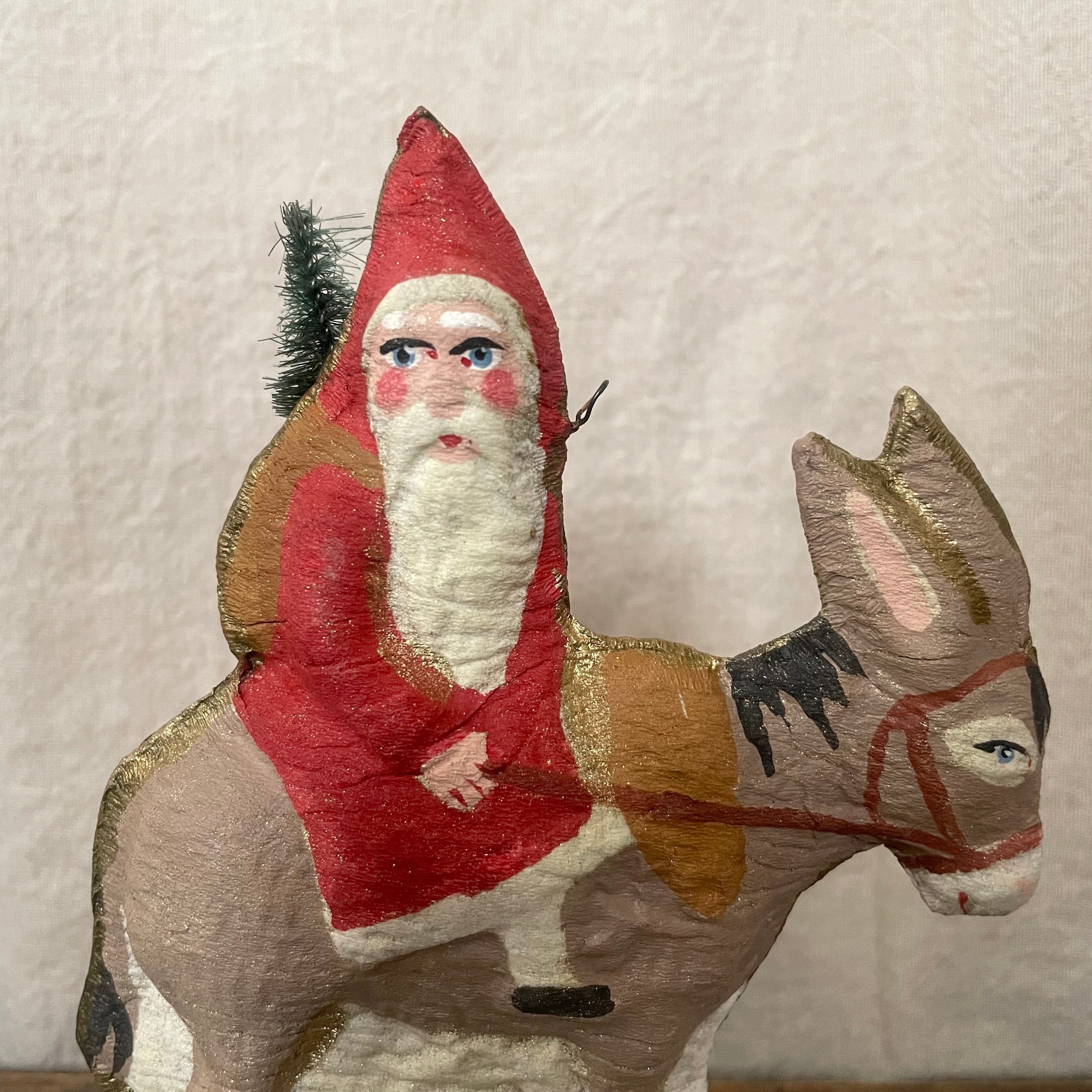 オランダの蚤の市で見つけたドイツ製のロバに乗ったサンタさんのオーナメントです。