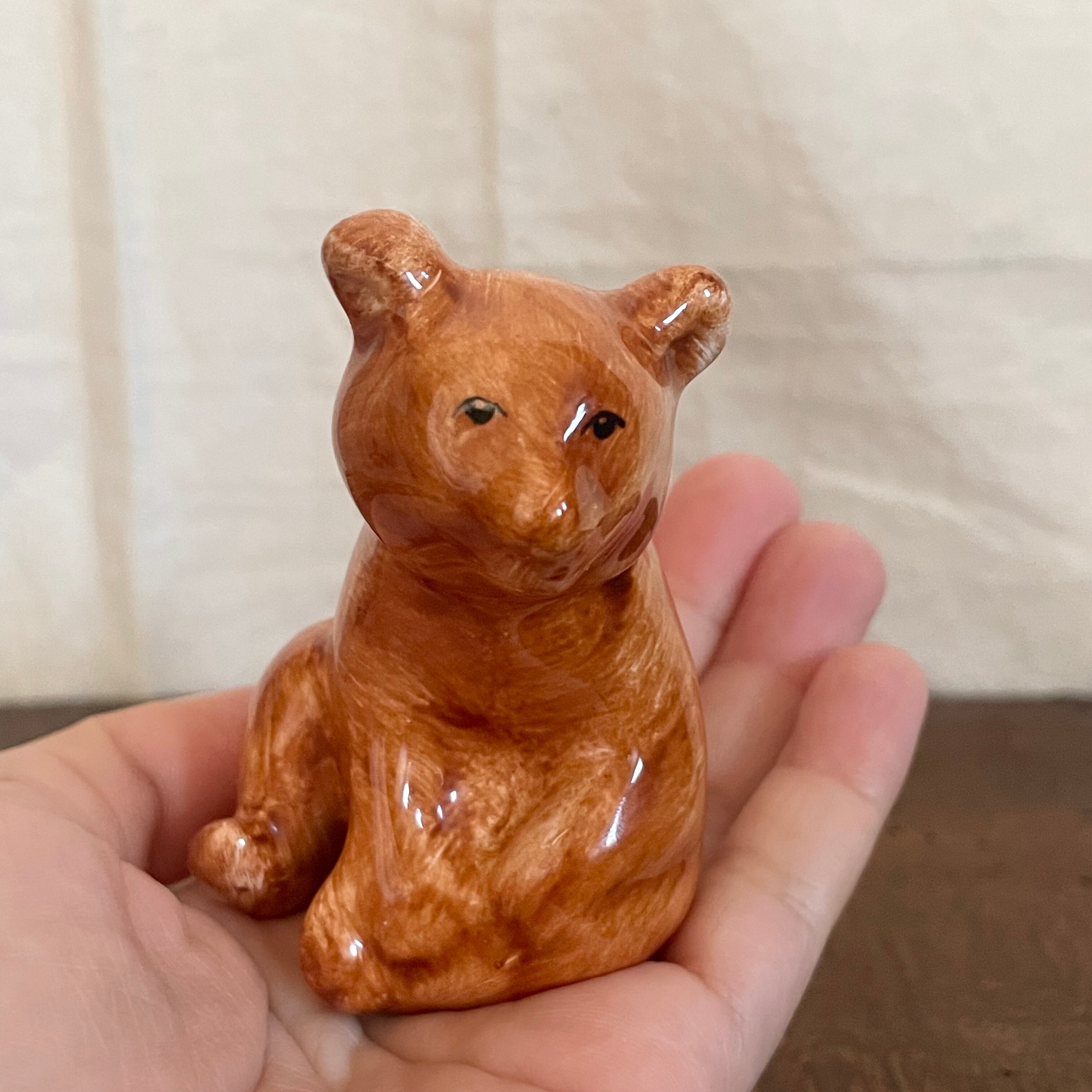 手作り感のあるクマは、なんといってもおじさん感のある座り方と、見つめてくる目が印象的です。