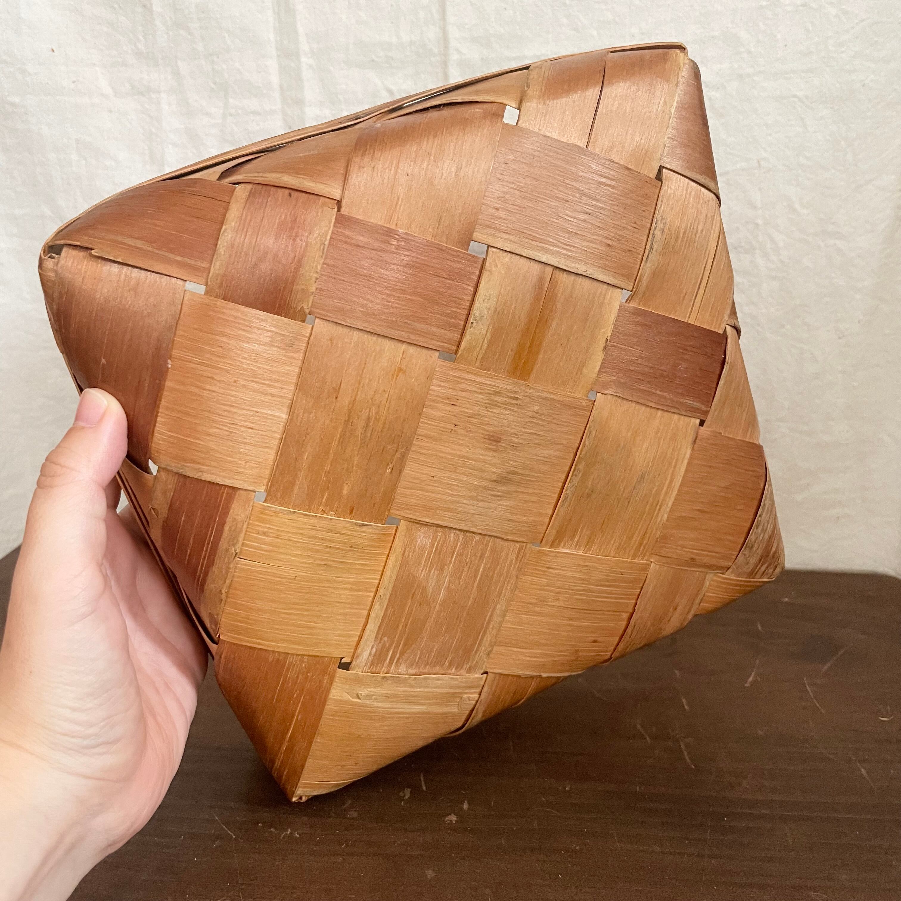 白樺の樹皮を使って作られたスポーンコリのトレイ型のかごです。
