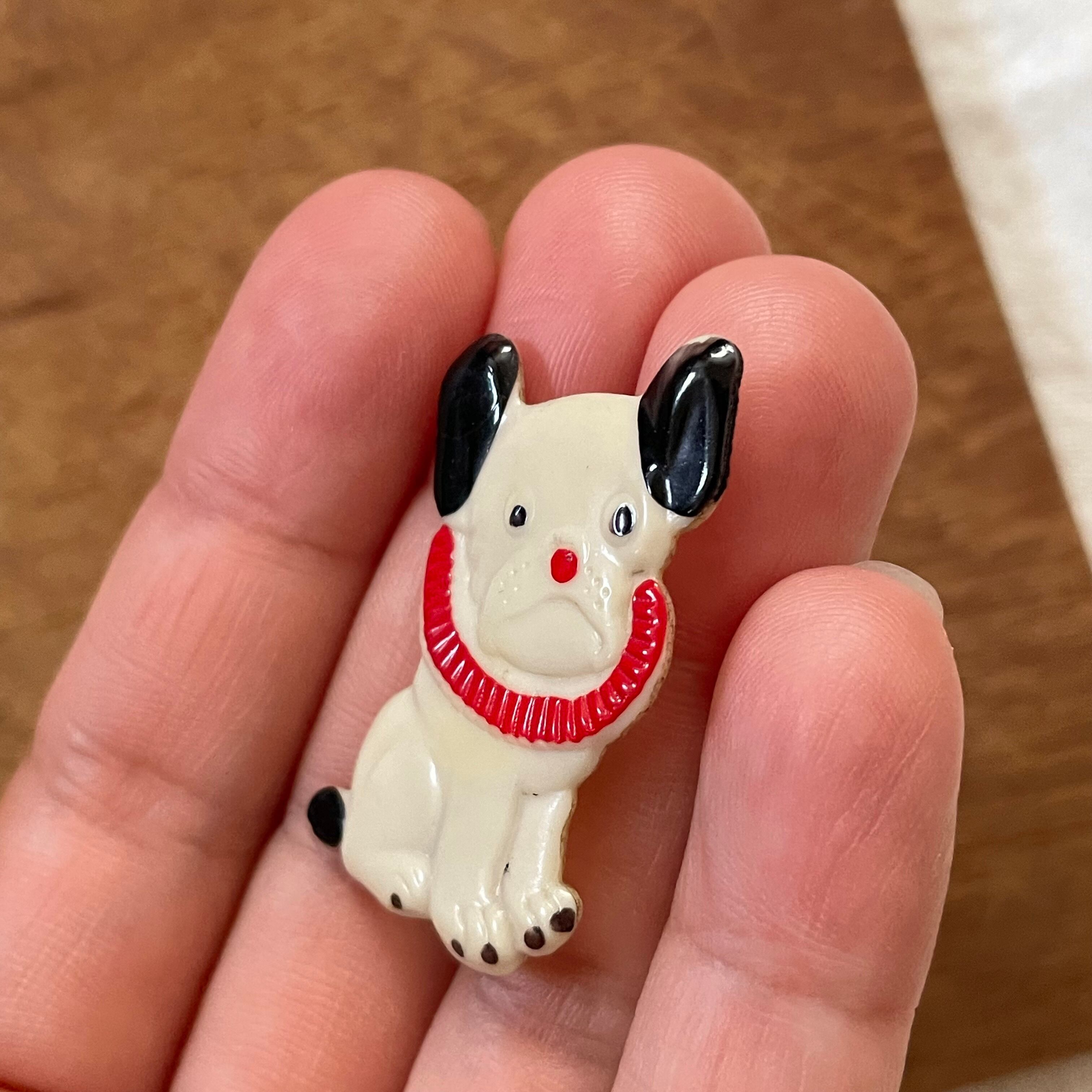 赤い首輪の犬ブローチ