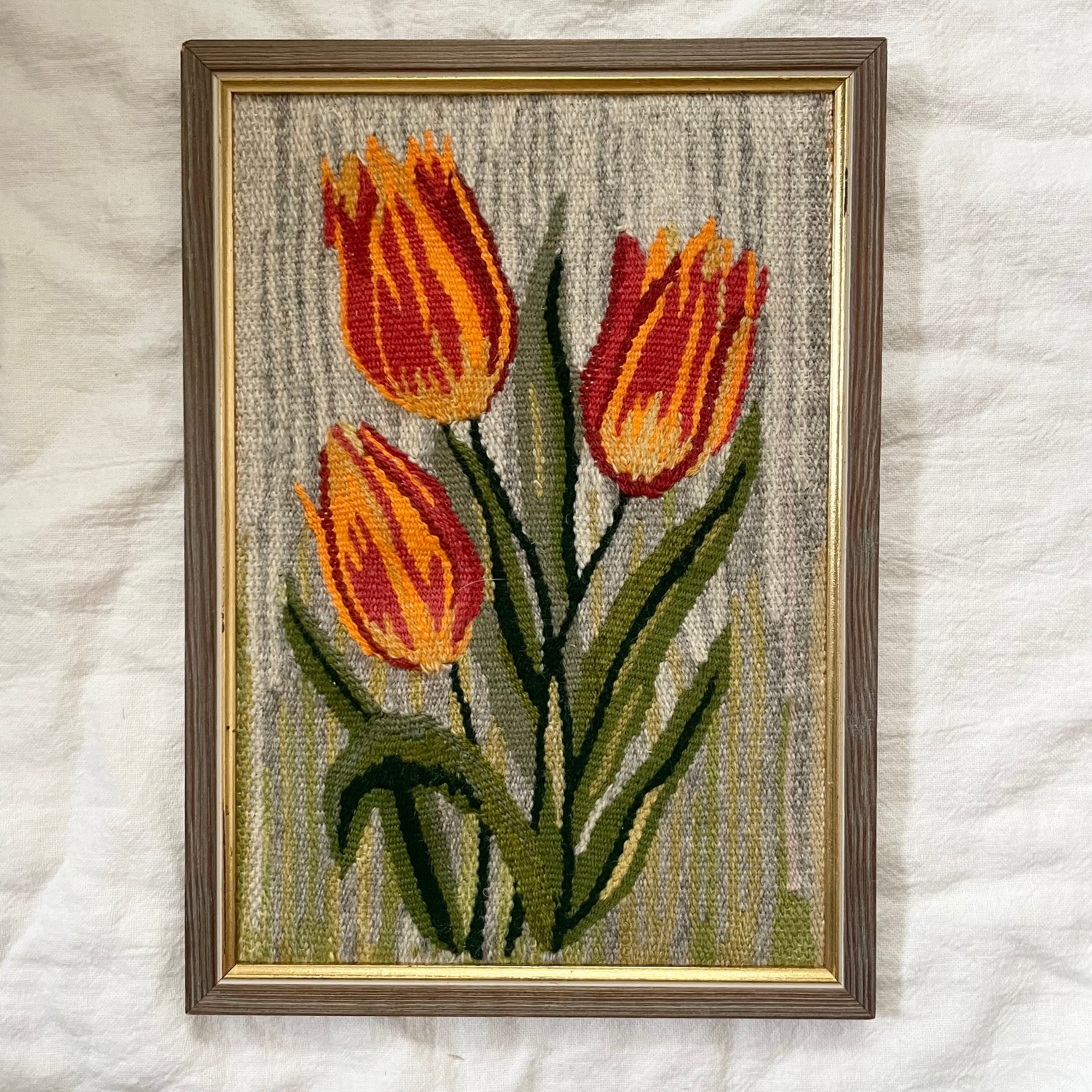 スウェーデンで見つけたチューリップの織物の壁飾りです。