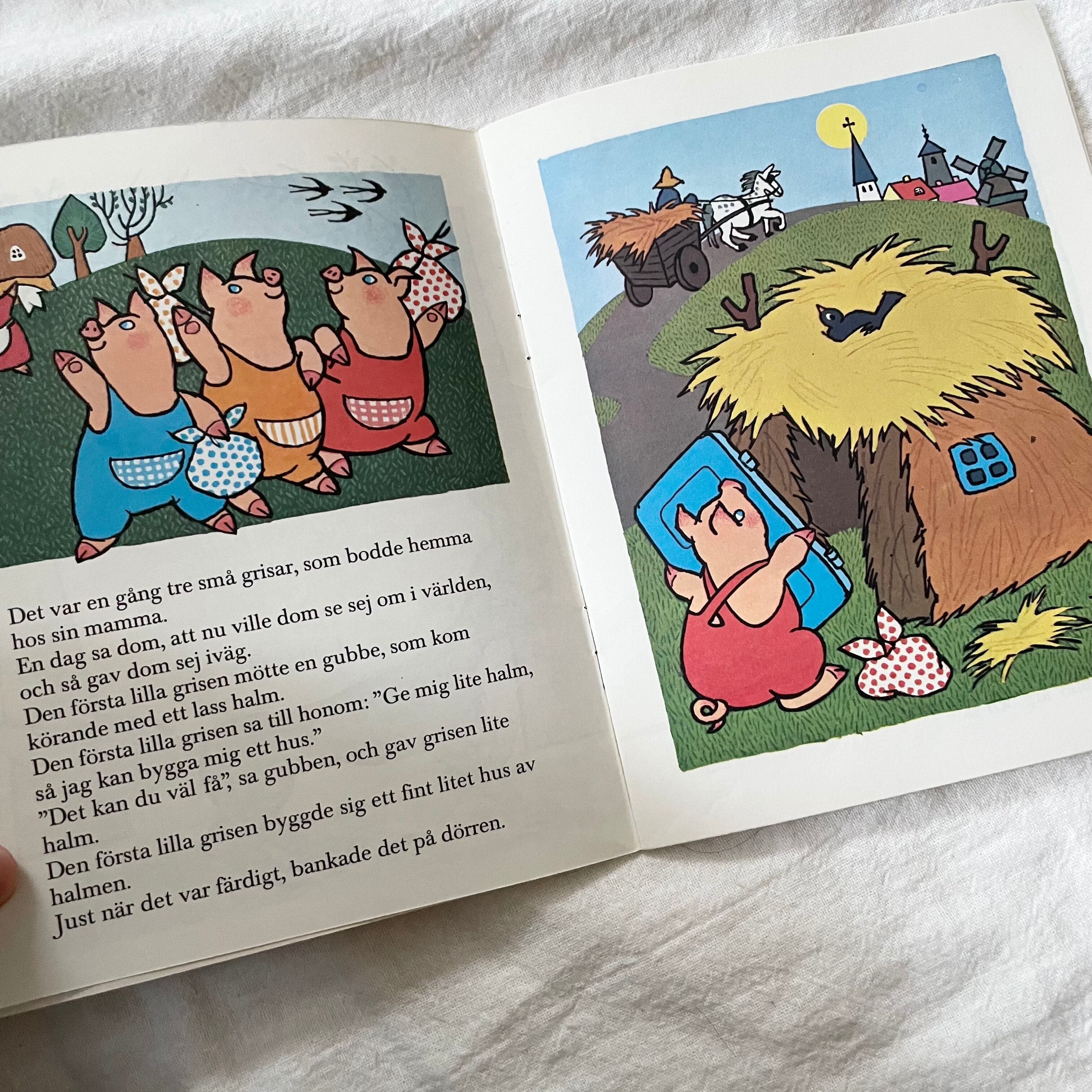 藁の家、木の家、煉瓦の家のあの3匹の子ブタがゆるくコミカルな絵で描かれています。