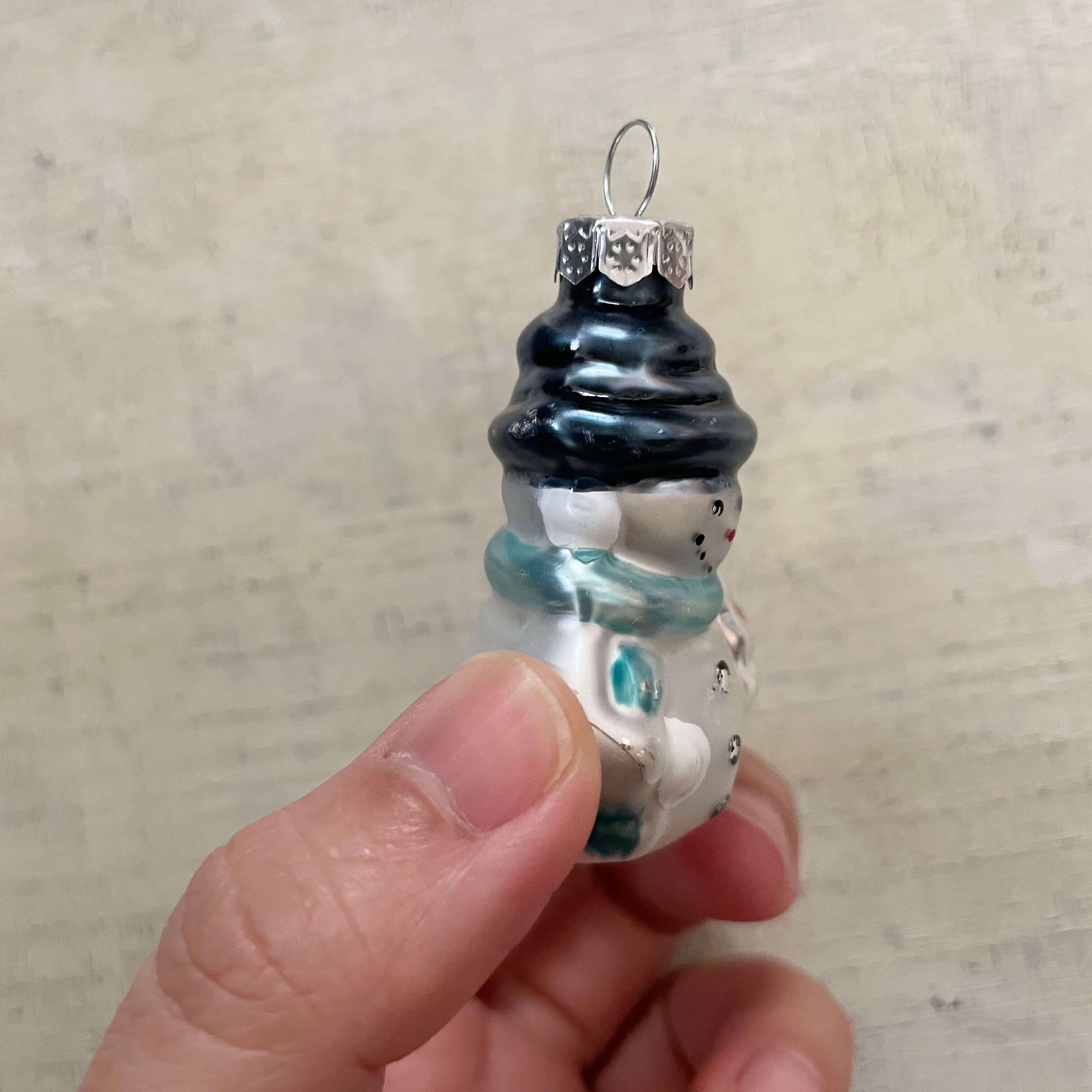 ガラス製ののオーナメントはツリーを持った笑顔の雪だるまがキュートです。
