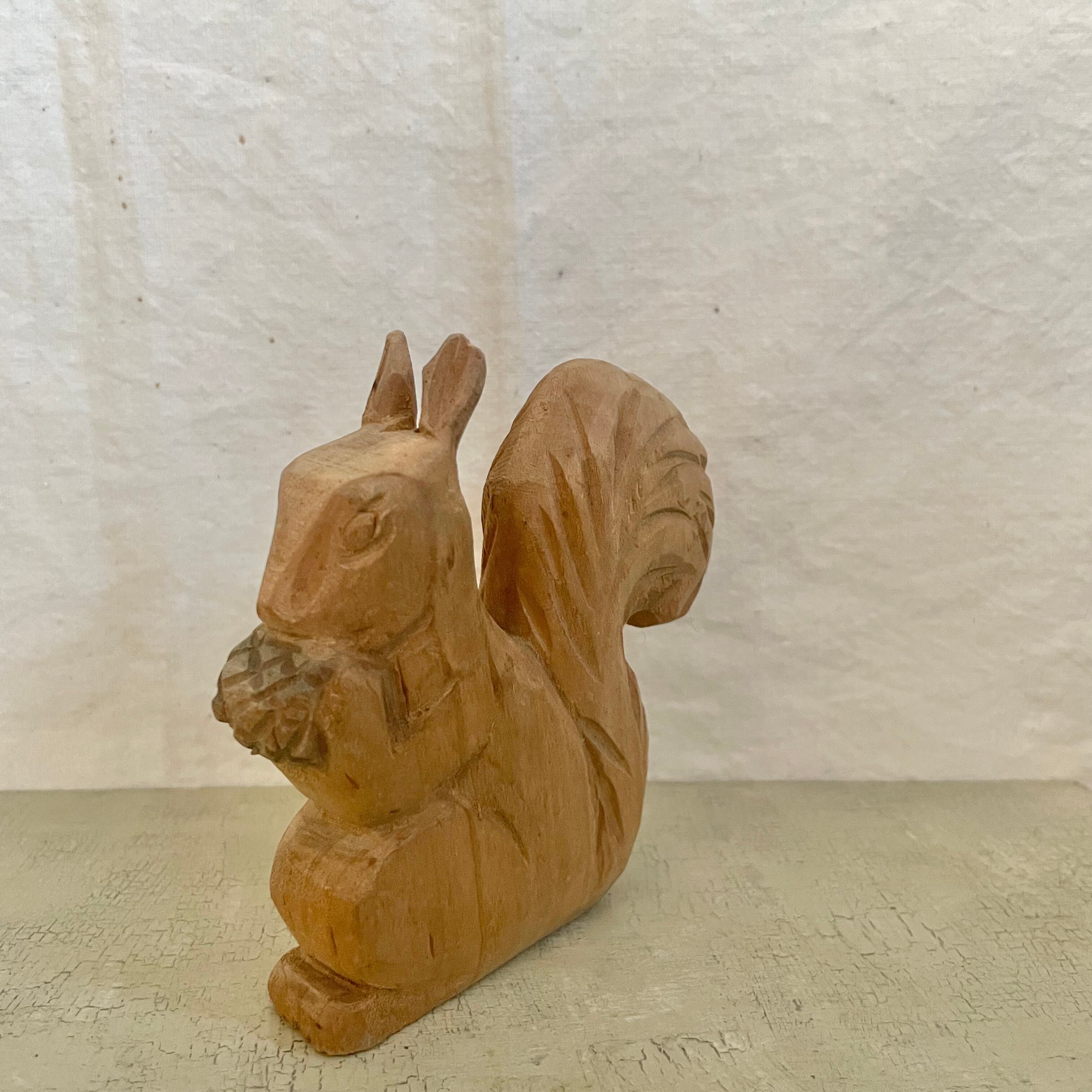 乾いた感じの木彫りのリスは、平面っぽさがありつつちゃんと自立する立体です。